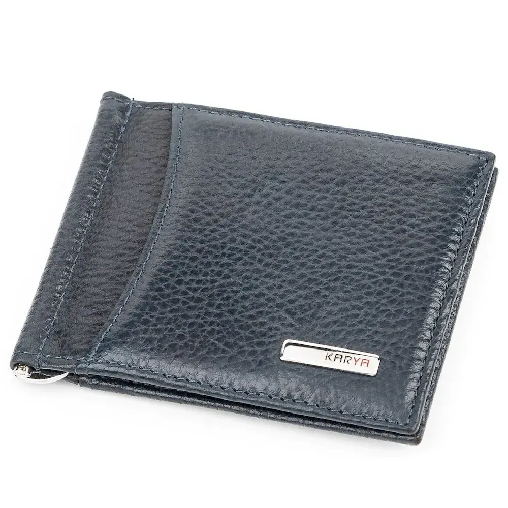 Затискач чоловічий KARYA 17085 шкіряний Синій