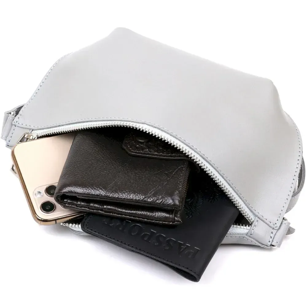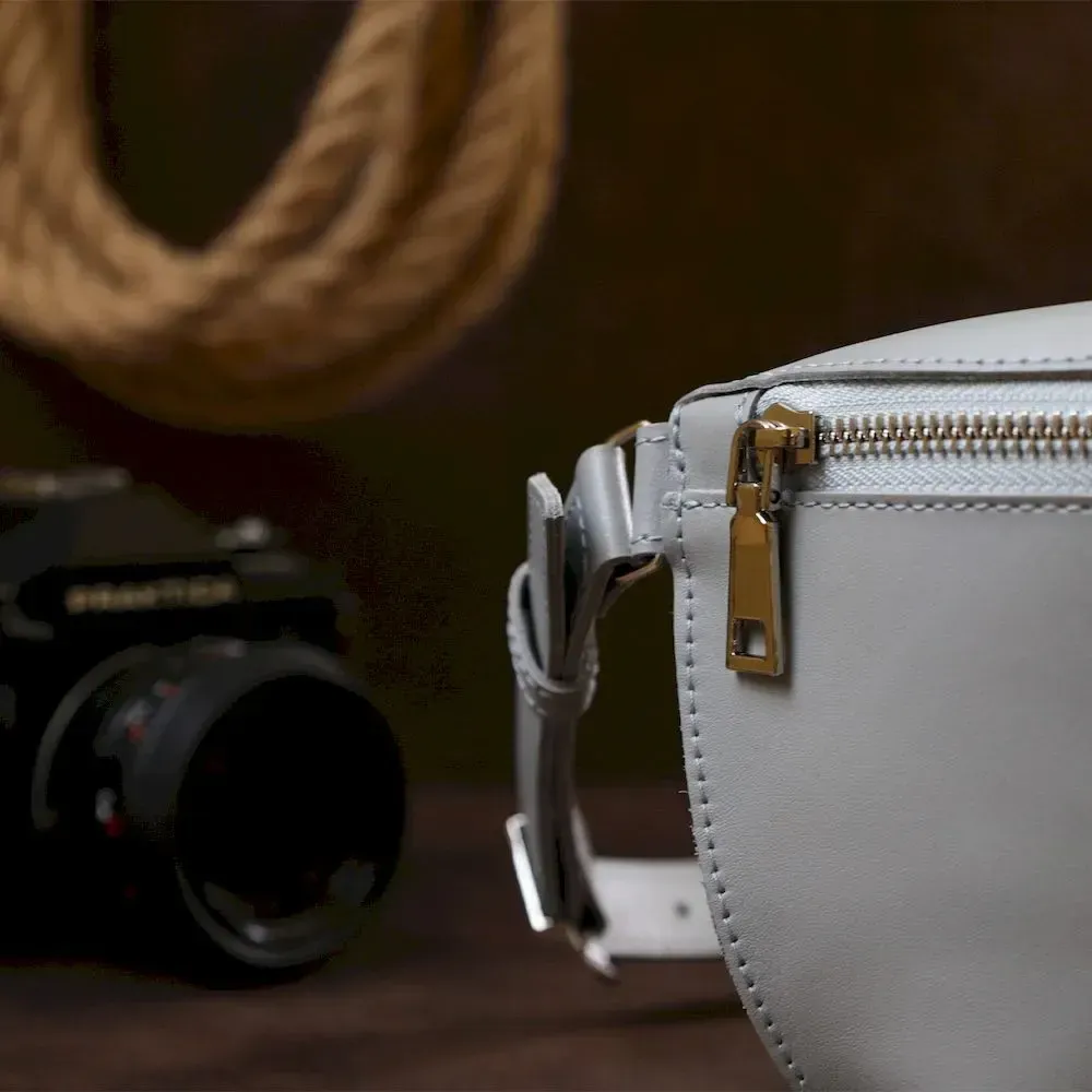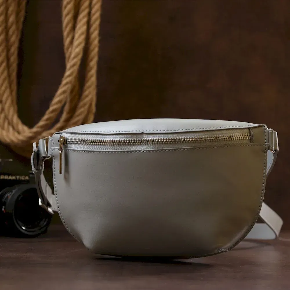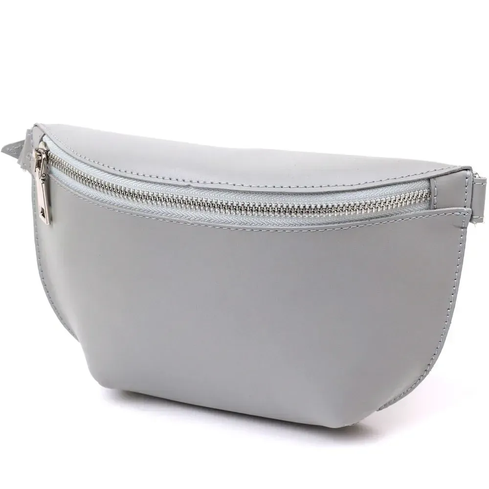 Чудова сумка-бананка в трендовому сірому кольорі з гладкою фактурою. Виконана модель з натуральної шкіри високої якості та міцності. У цьому виробі є одне містке відділення, в яке легко поміститься телефон, ключі та інше. Таку сумку можна подарувати дорогій людині на будь-яке свято.