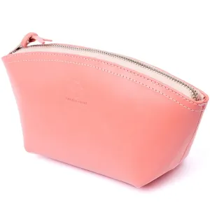 Містка жіноча косметичка з натуральної італійської шкіри ніжного пудрового кольору. Аксесуар закривається на блискавку. У пудровому кольорі виріб виглядає дуже ніжно та жіночно. Така косметичка додасть вам легкості і не залишить байдужою жодну дівчину. Всередині косметички - автономне дзеркальце. З такою косметичкою вам буде зручно вирушати у подорож і просто зберігати особисту косметику. У неї легко поміститься ваша декоративна косметика, серветки, гель для рук, маленькі парфуми. Аксесуар упакований у повстяний чохол. Така косметичка стане чудовим подарунком для будь-якої дівчини. А в подорожі такий аксесуар просто ідеальна знахідка.