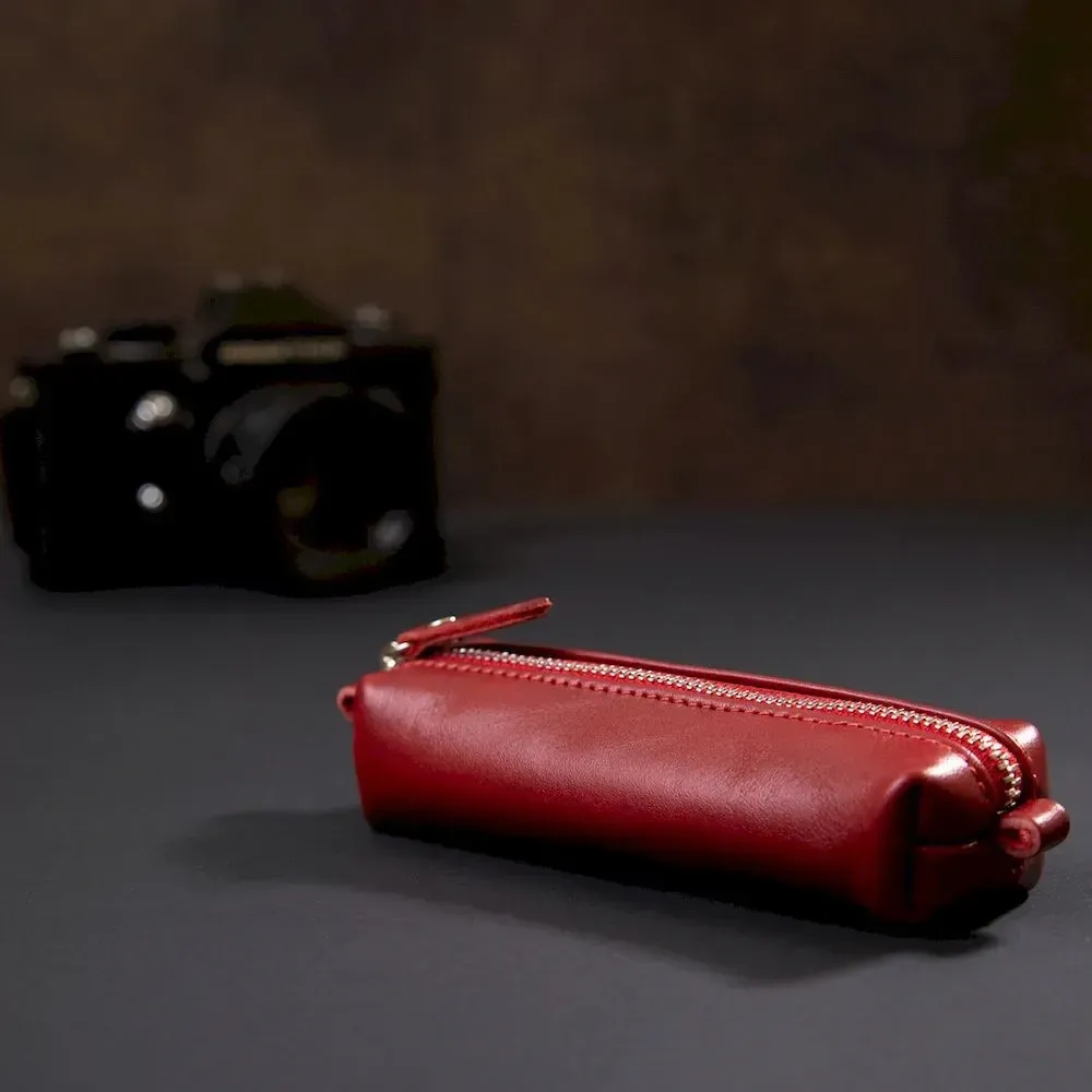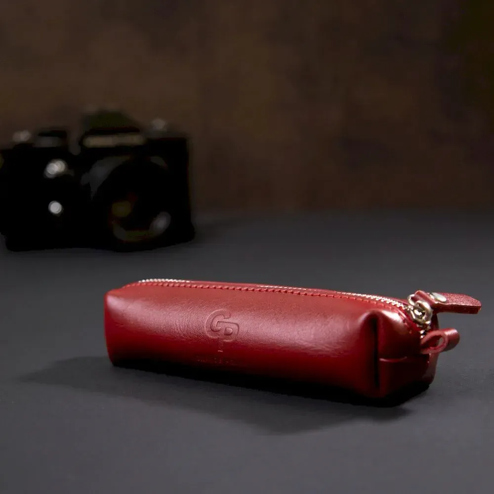 Жіноча шкіряна ключниця в красивому насиченому червоному кольорі. Має форму тубуса, що дуже зручно. Ваші ключі тепер завжди будуть надійно захищені та доступні. Запакований аксесуар у фірмовий чохол чорного кольору. Така річ стане чудовим подарунком, адже ключниці потрібні всім без винятку.