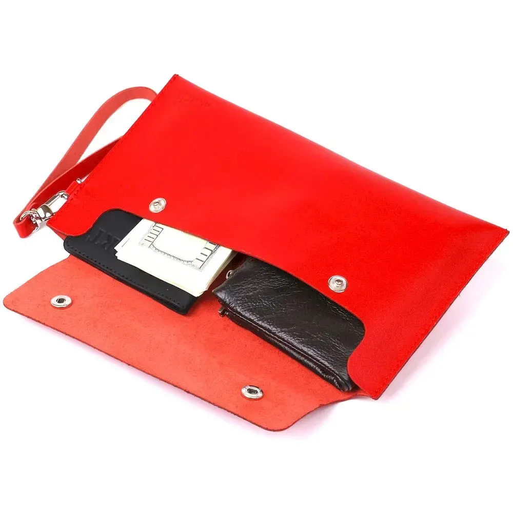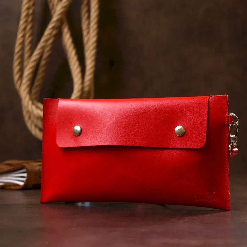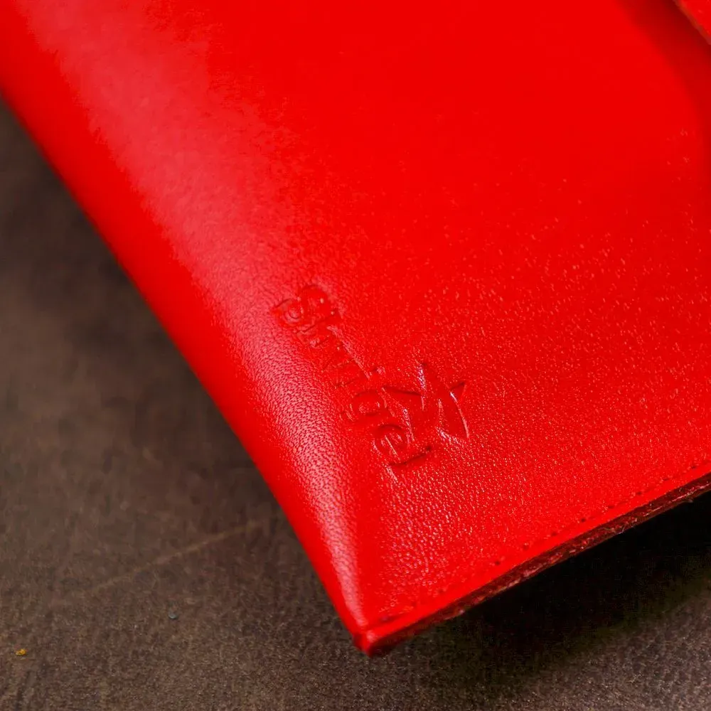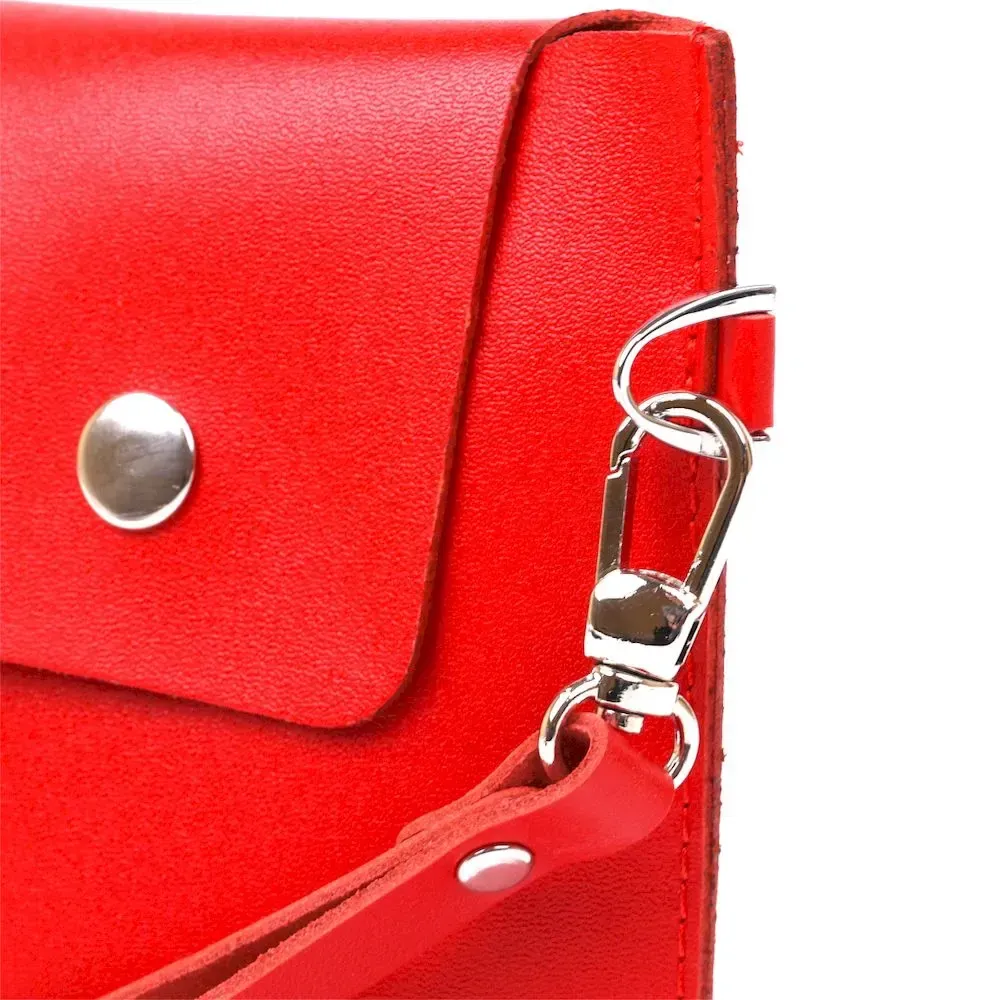 Жіноча тревел-косметичка в насиченому червоному кольорі для зберігання документів або інших цінних речей, особливо актуально під час подорожей. Виконана з натуральної шкіри високої якості, що видно відразу, як Ви візьмете аксесуар у свої руки. Закривається дана модель на клапан із двома кнопками у кольорі під срібло. Сам аксесуар дуже місткий та зручний.