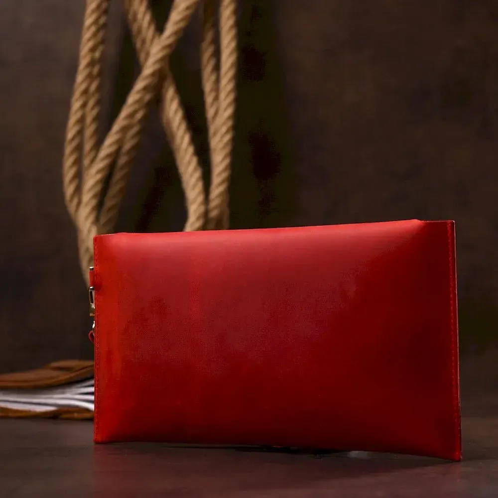 Чудова жіноча тревел-косметичка в насиченому червоному кольорі з матовою вінтажною фактурою, яка дуже приємна на дотик. Виглядає цей виріб дуже стильно і багато. Матеріал виготовлення – натуральна високоякісна шкіра із відмінними показниками зносостійкості. Такий аксесуар стане гарним подарунком для коханої людини.