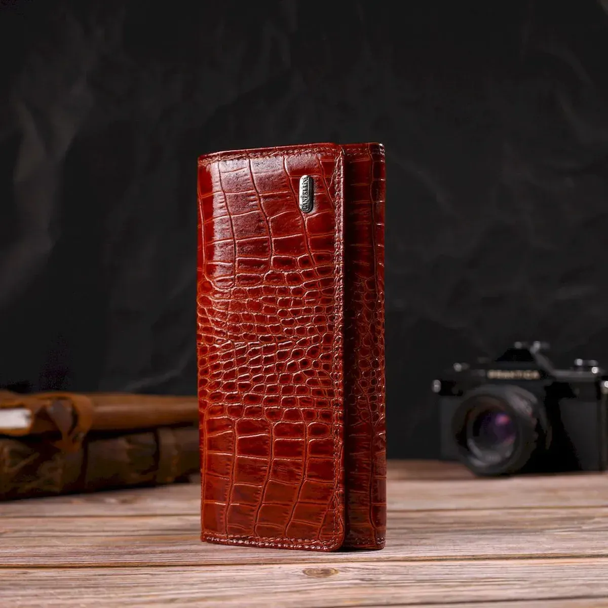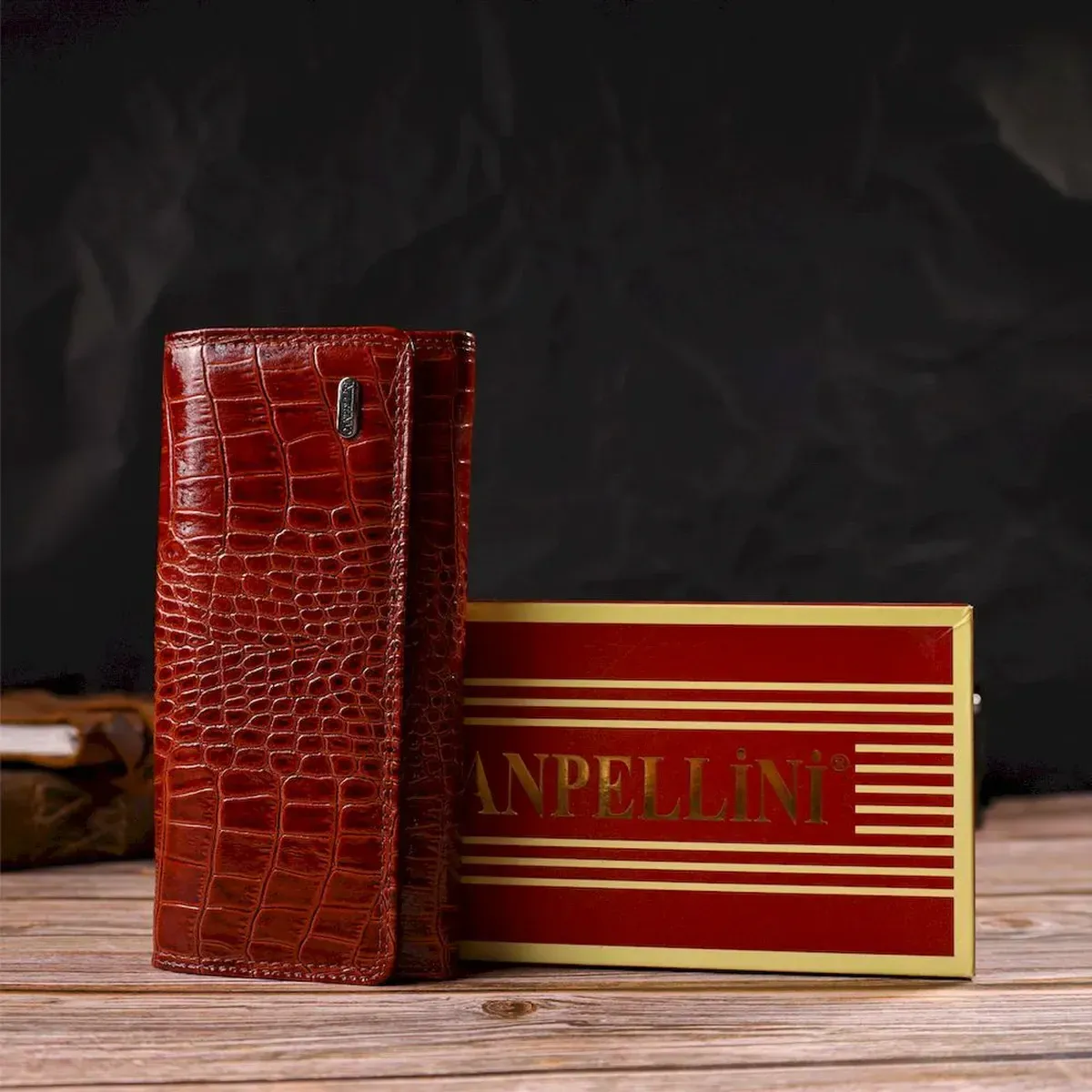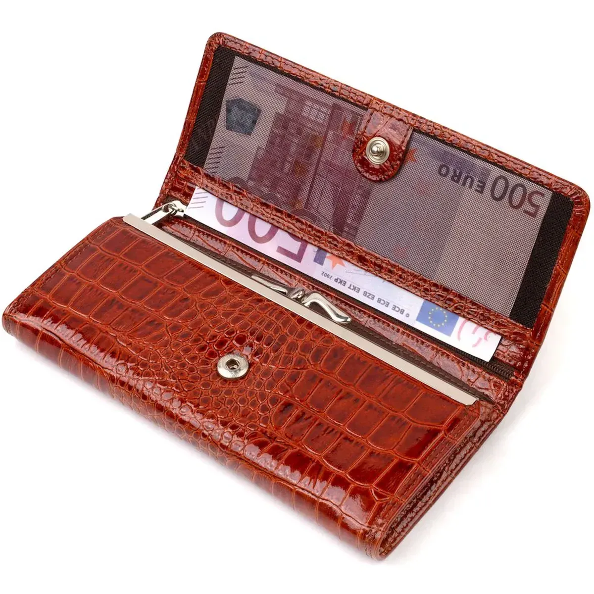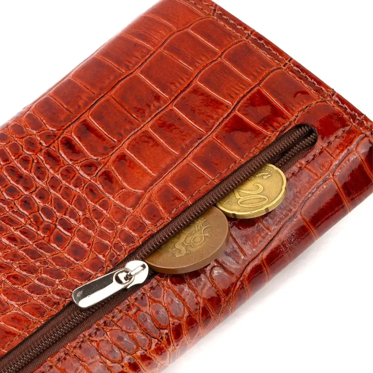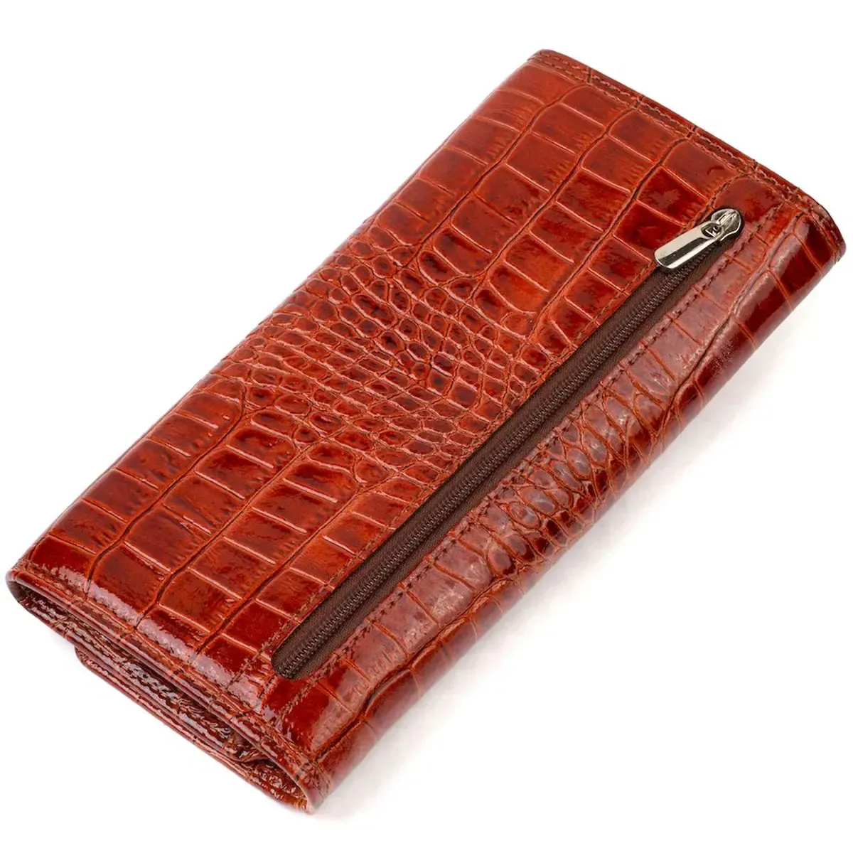 Жіночий гаманець з лакованої натуральної шкіри з тисненням під крокодила CANPELLINI 21705 Коричневий
