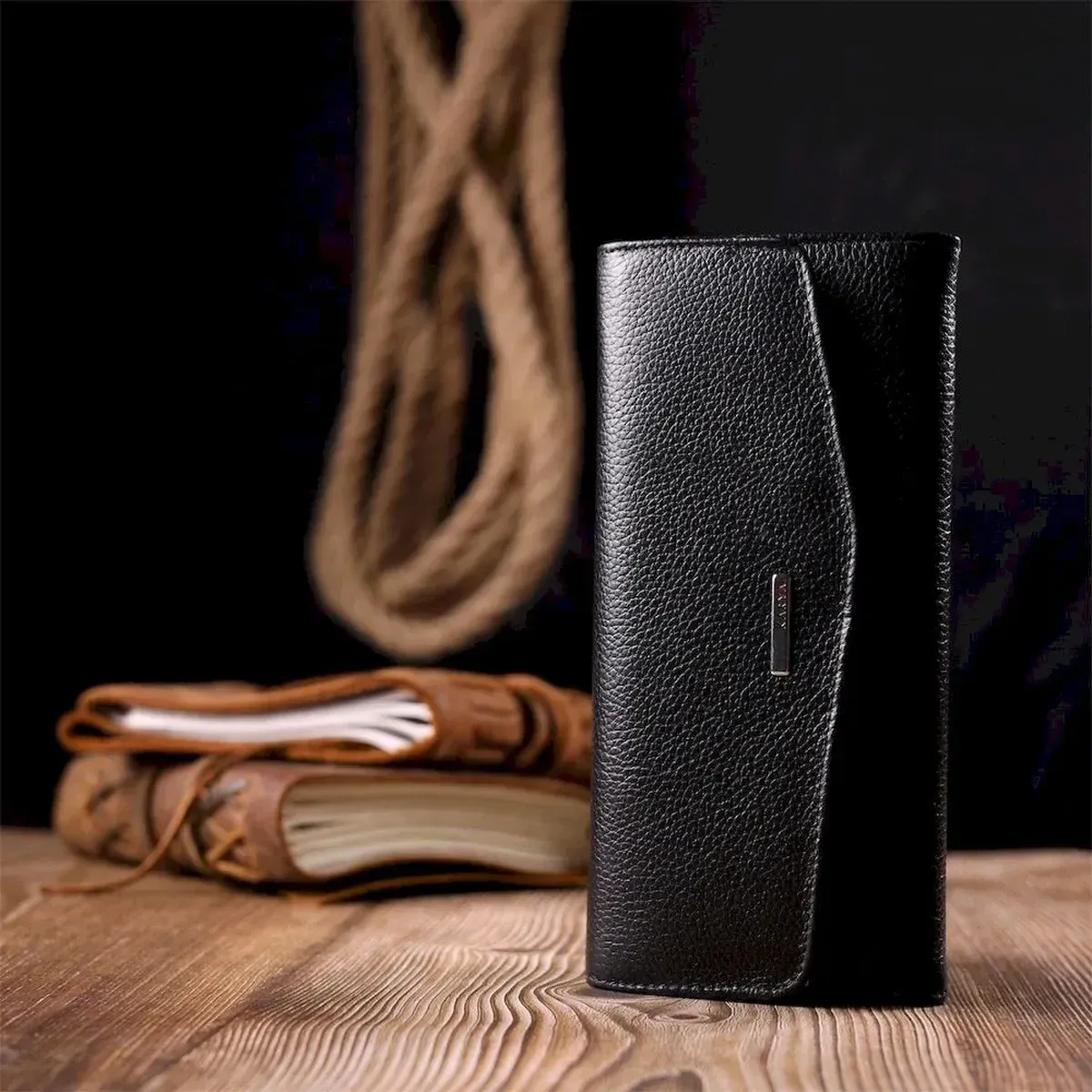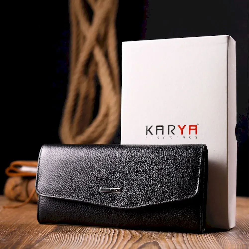 Жіночий гаманець з клапаном із гладкої шкіри KARYA 21116 Чорний