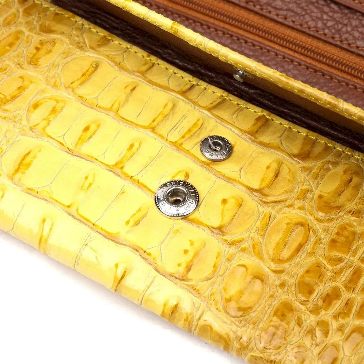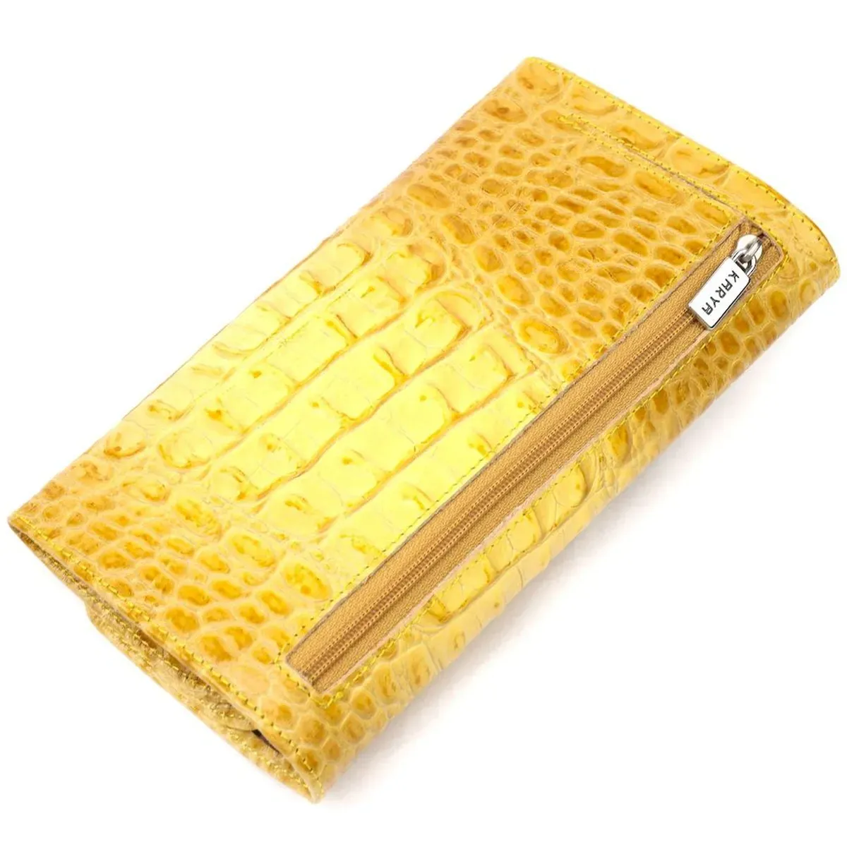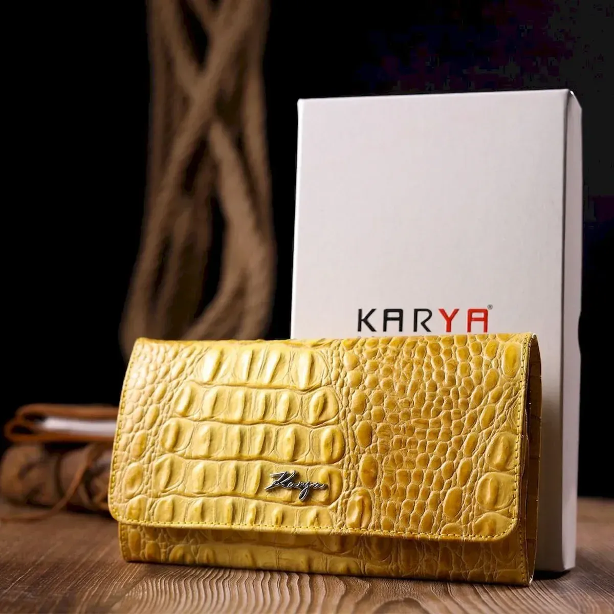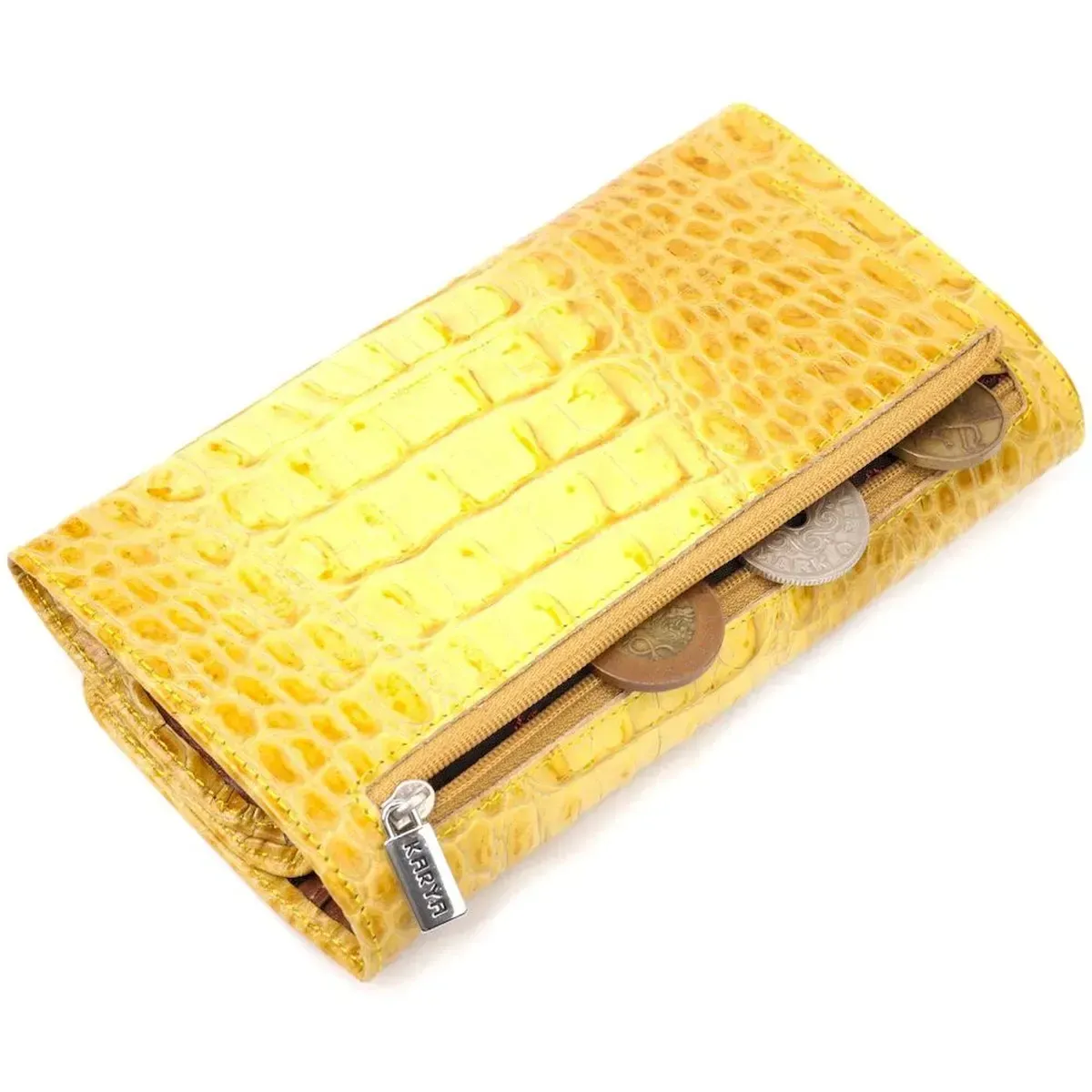 Жіночий гаманець із клапаном з натуральної шкіри з тисненням під крокодила KARYA 21145 Жовтий