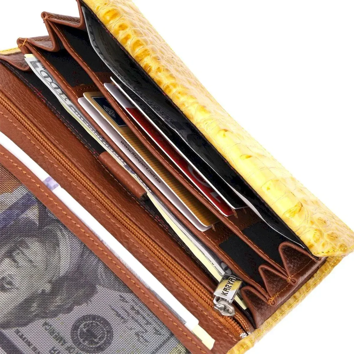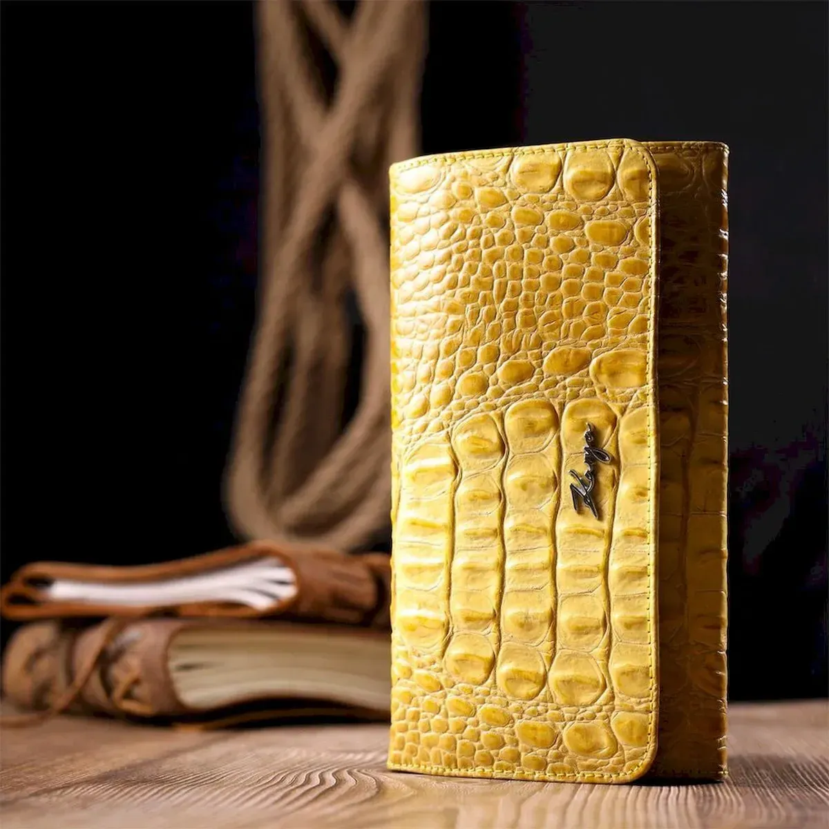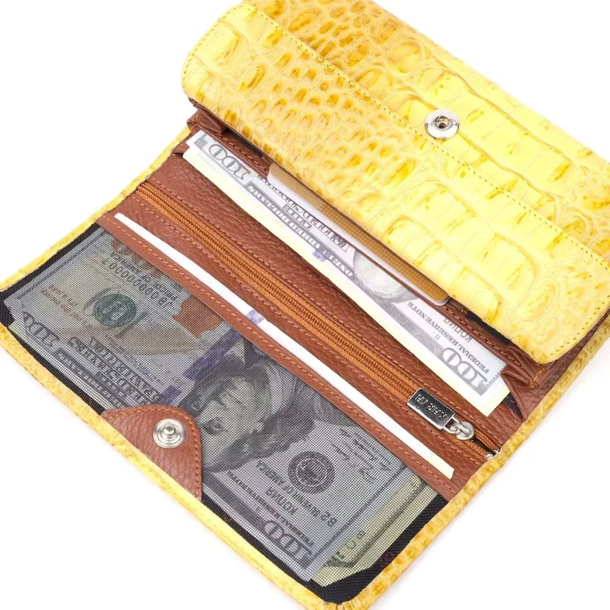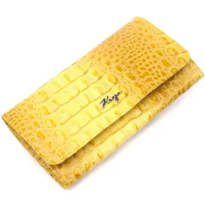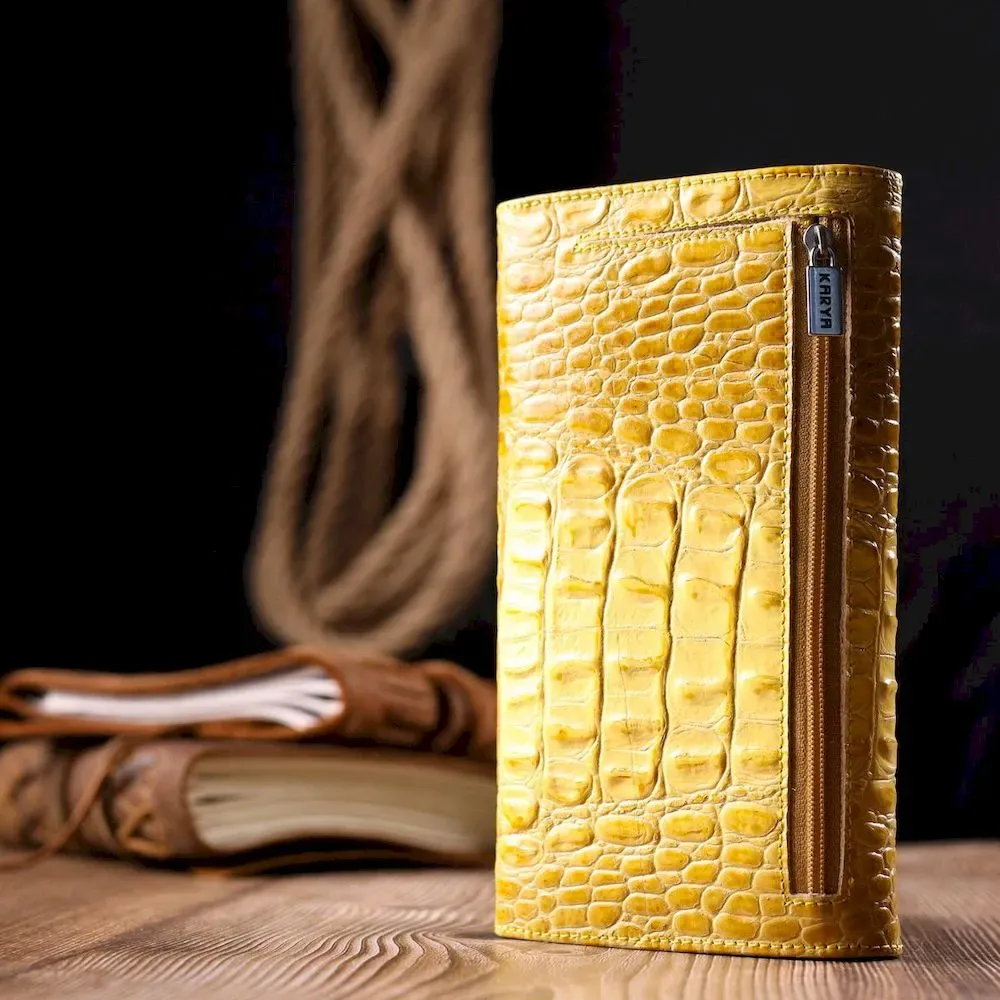 Жіночий гаманець із клапаном з натуральної шкіри з тисненням під крокодила KARYA 21145 Жовтий