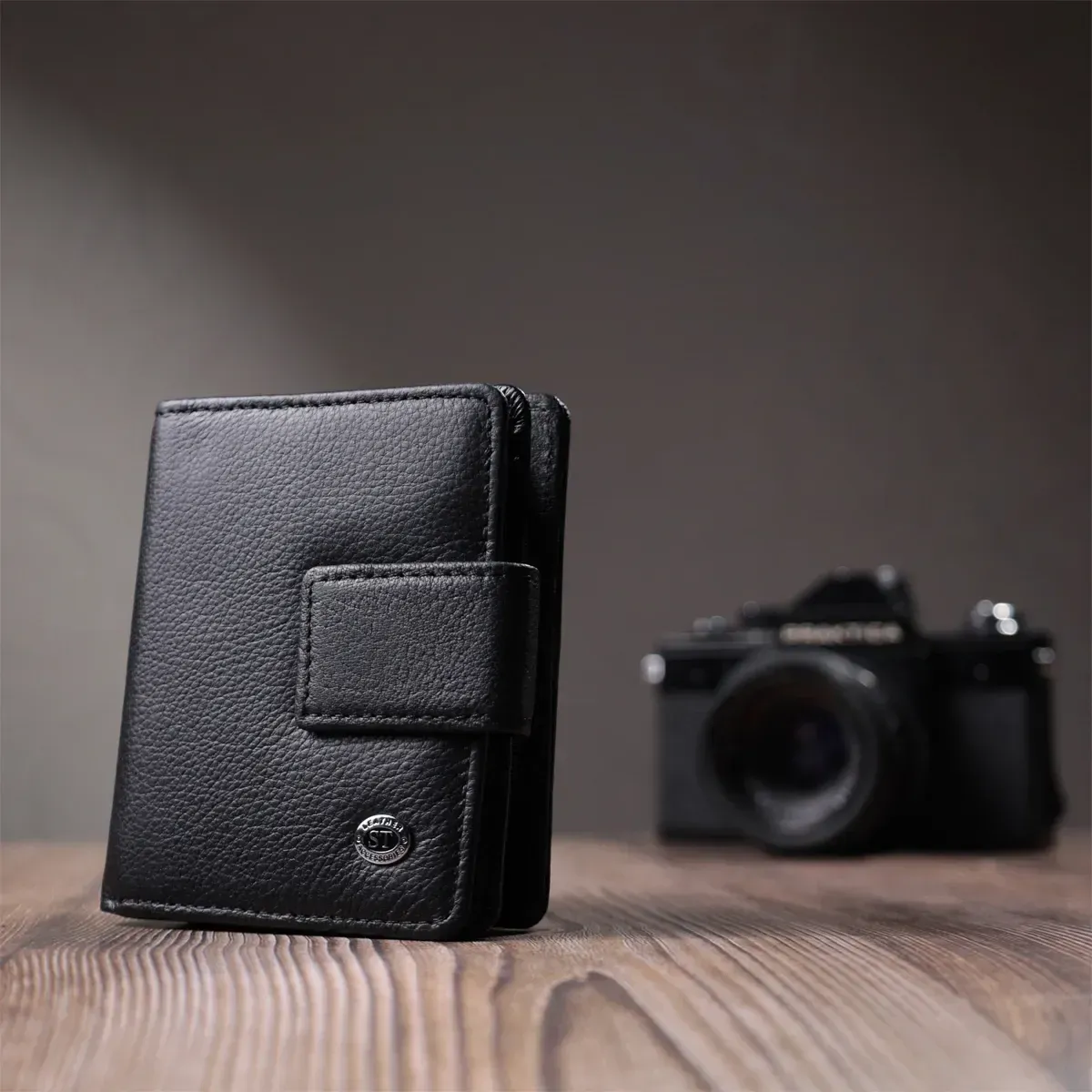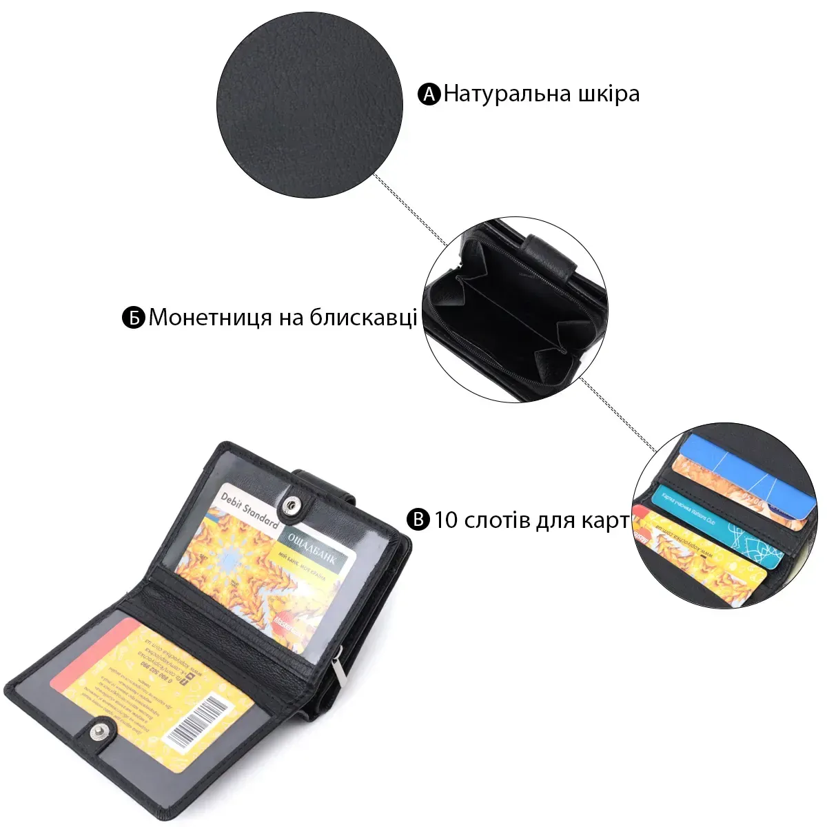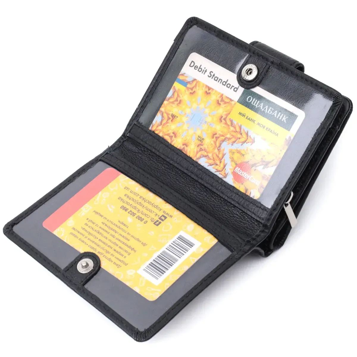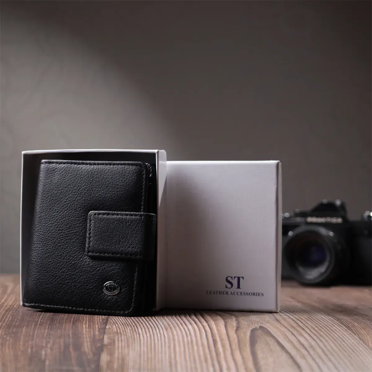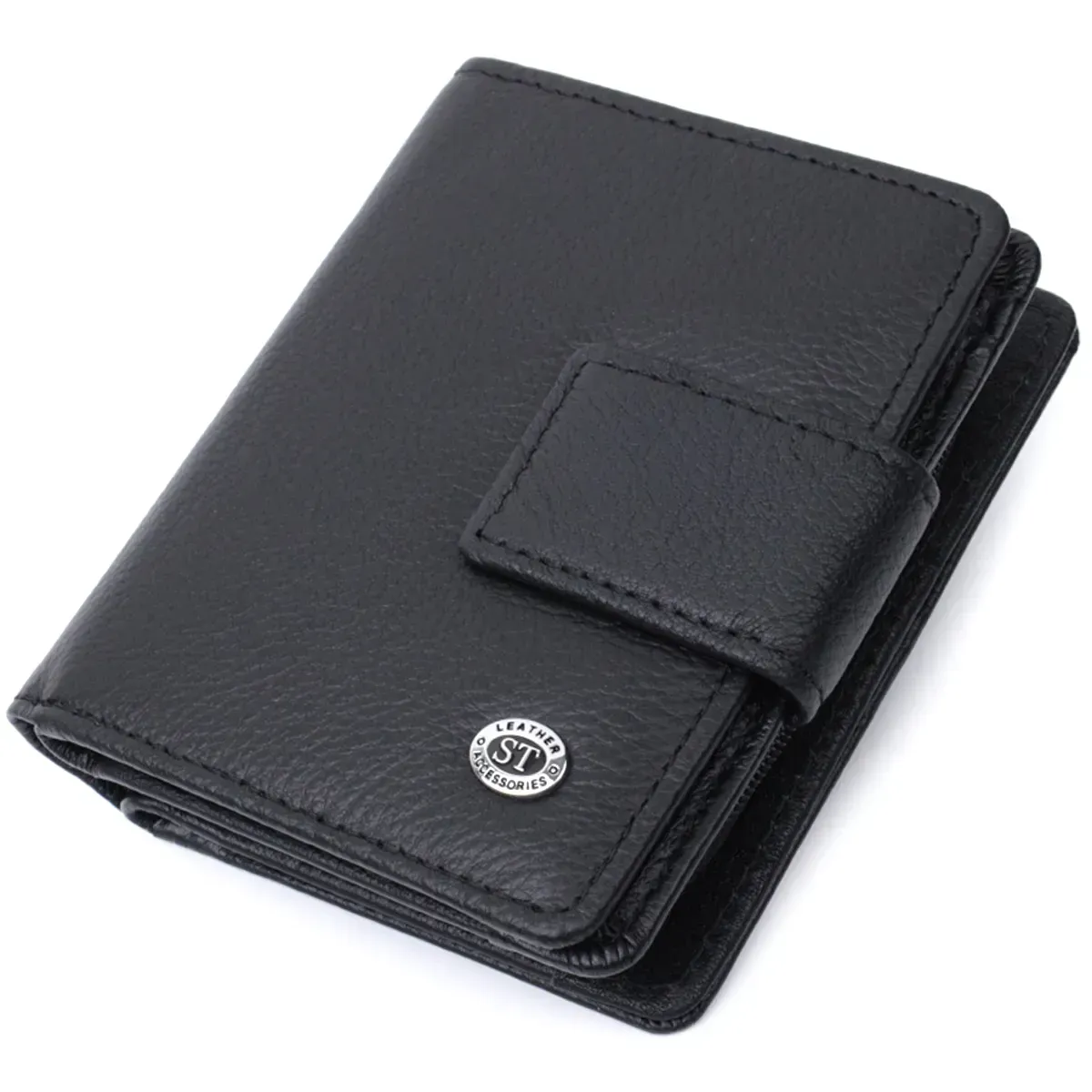 Жіночий гаманець з монетницею та блоком для пропусків із натуральної шкіри ST Leather 22713 Чорний