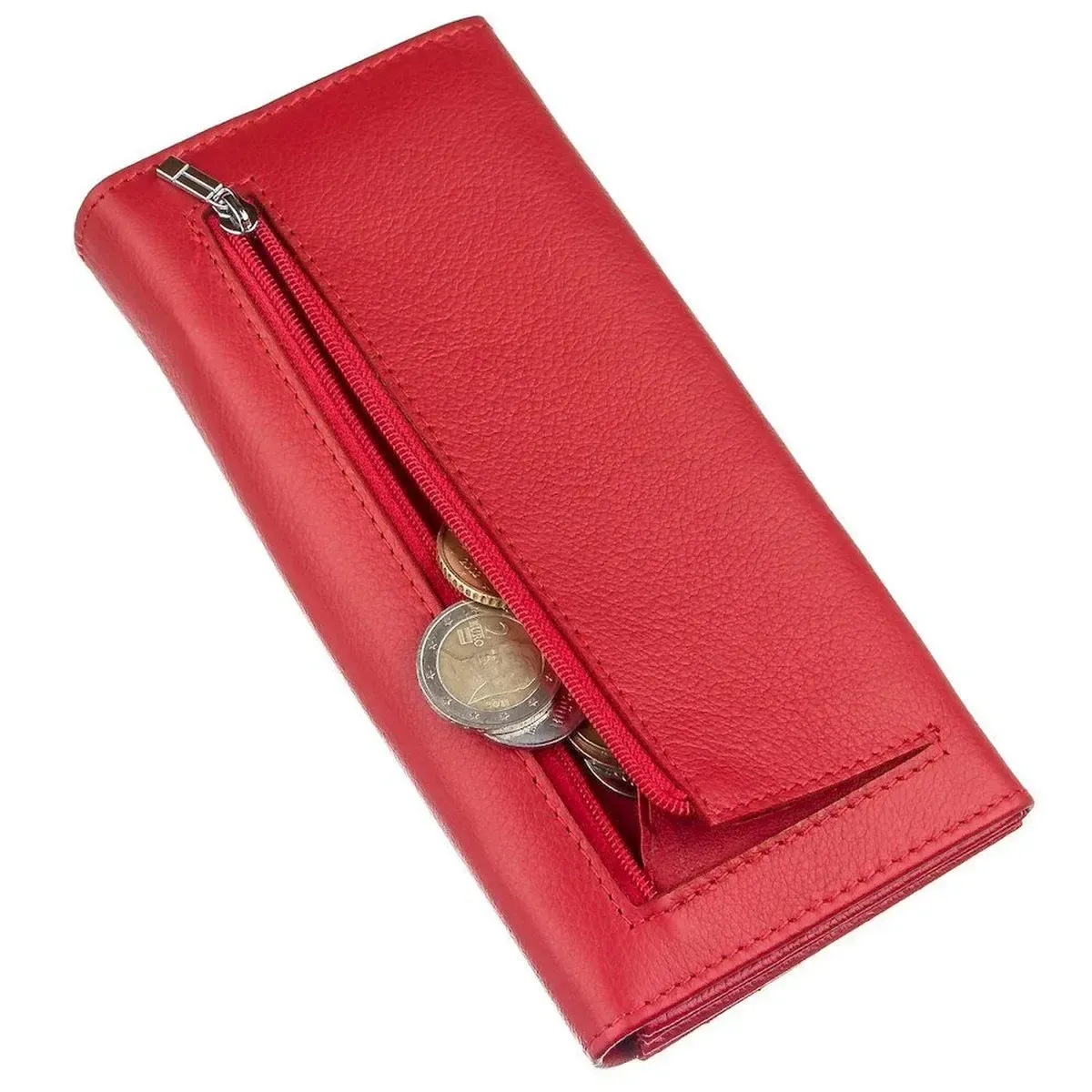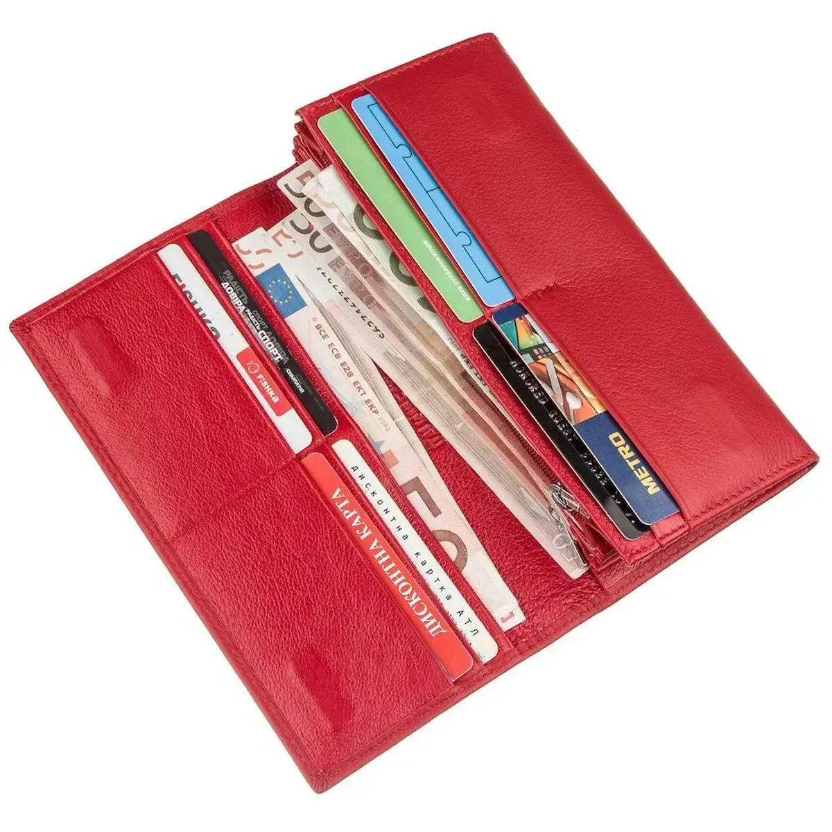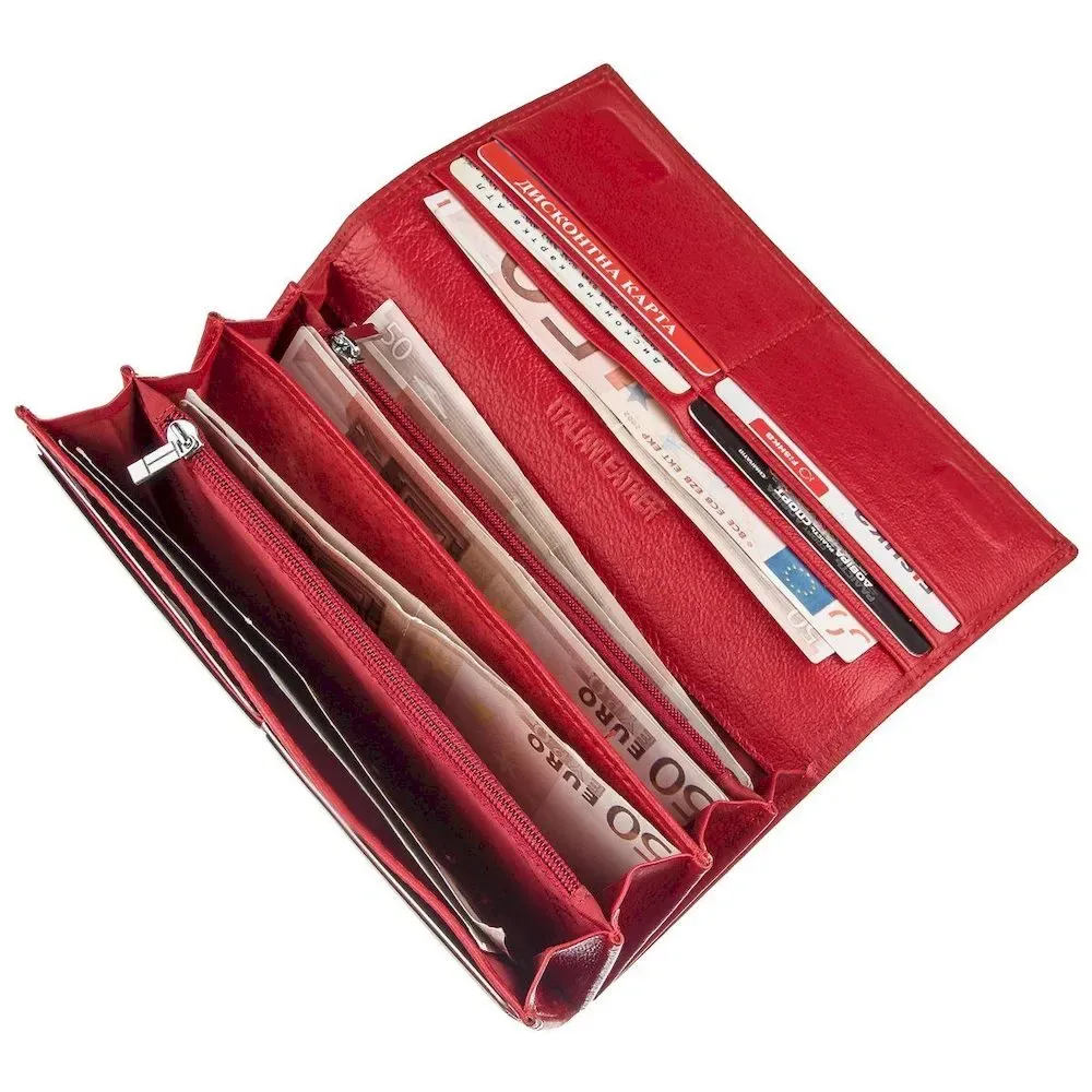 Яскравий місткий жіночий клатч з натуральної шкіри м'якою та приємною на дотик. Аксесуар виконаний у червоному кольорі, який однозначно виділить вас із натовпу та підкреслить вашу індивідуальність. Прошитий по краях гаманець рівним рядком червоного кольору. Клатч стане незамінним помічником для будь-якої дівчини та чудовим подарунком. У моделі використовується лише якісна перевірена фурнітура сріблястого кольору. На лицьовій стороні аксесуара металевий логотип бренду. У комплекті до товару йде фірмова картонна коробка білого кольору.