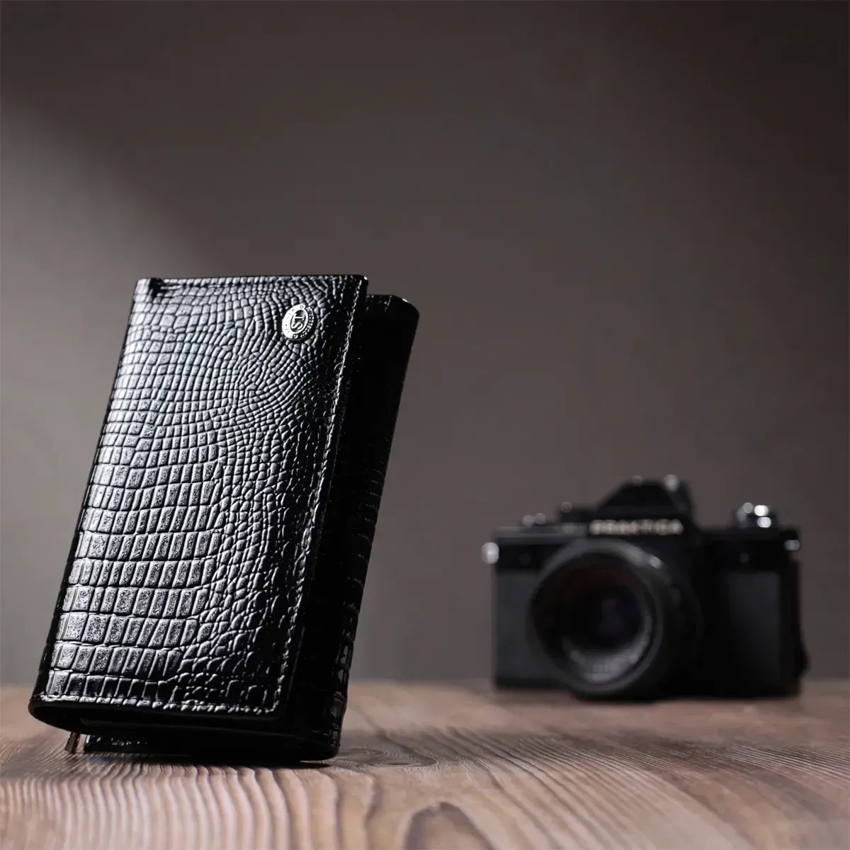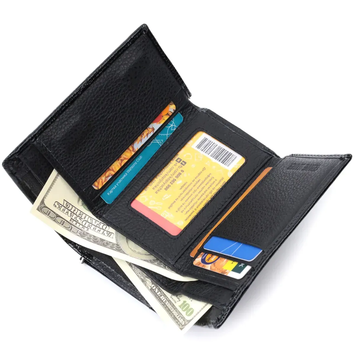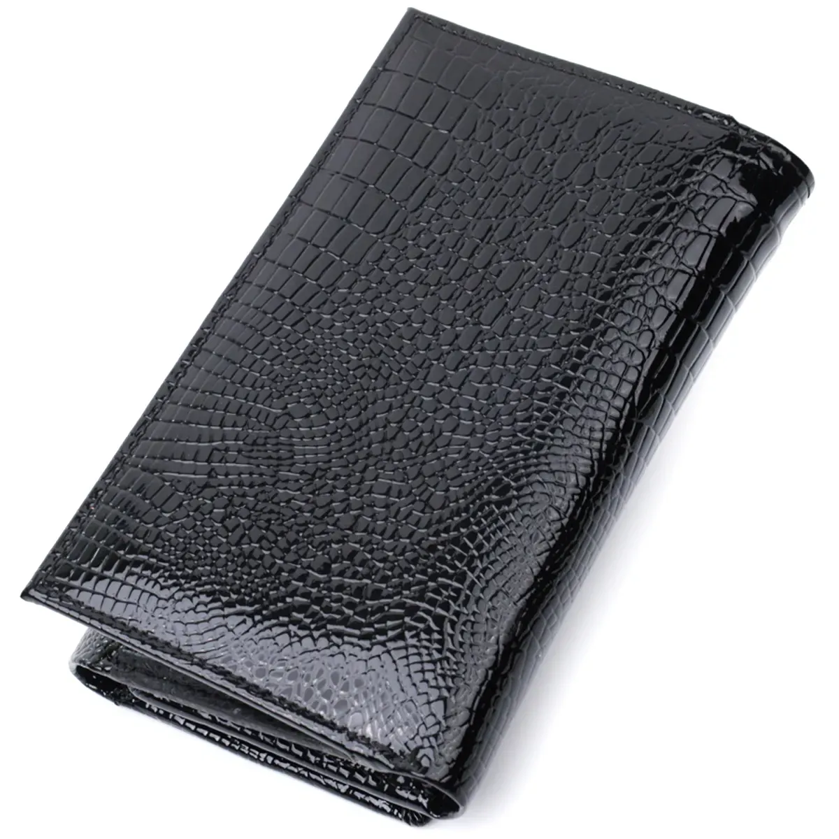 Жіночий гаманець у три складання з лакованої фактурної натуральної шкіри ST Leather 22707 Чорний