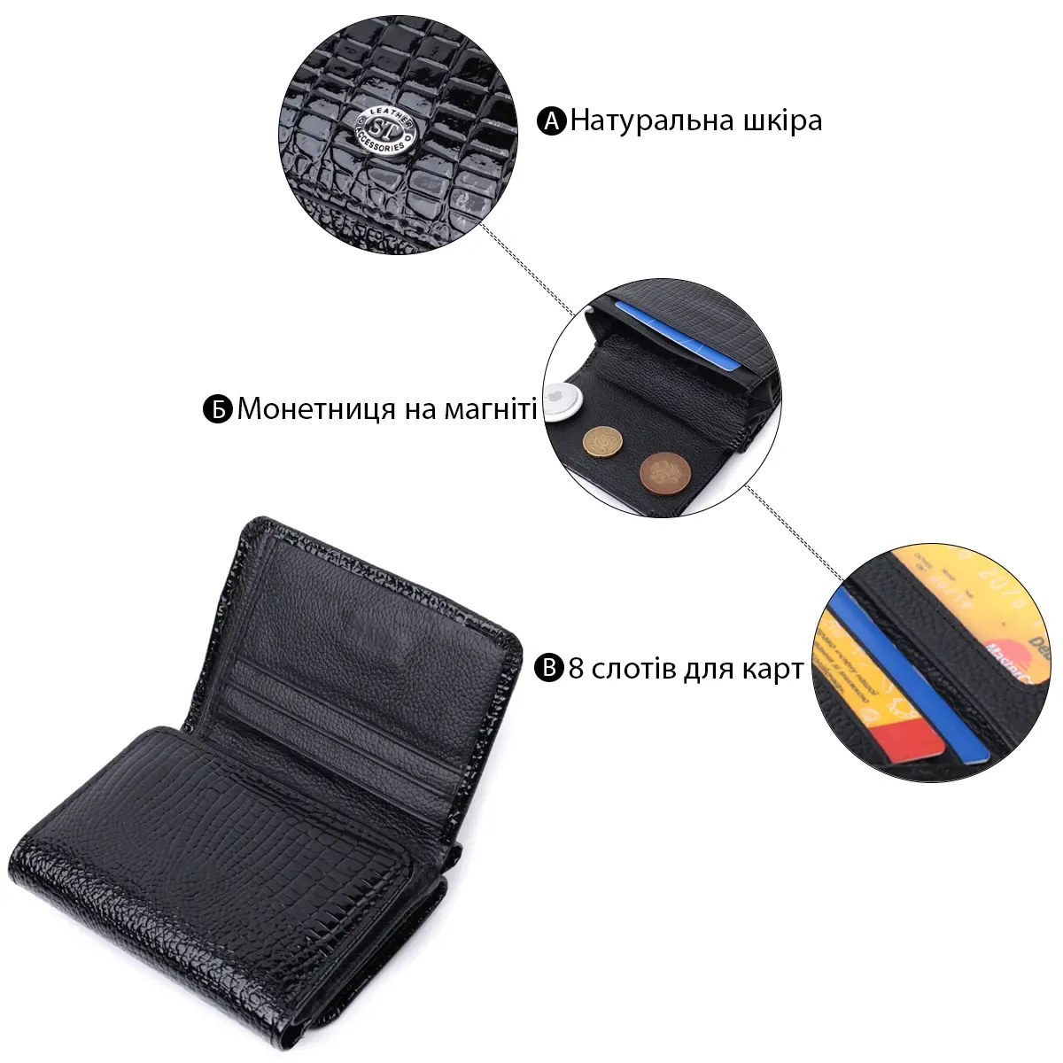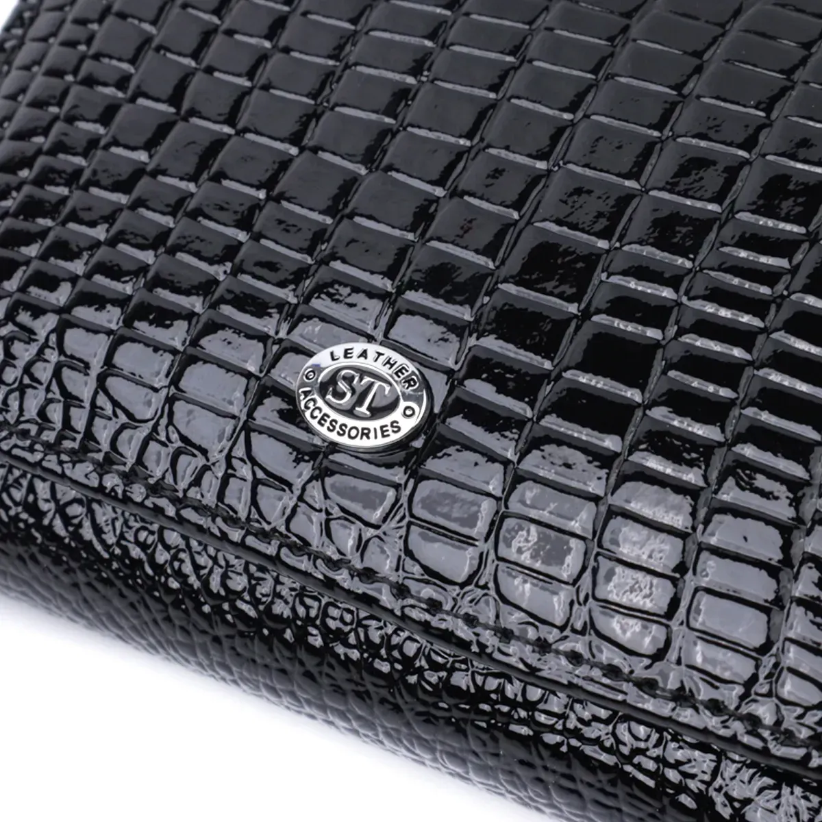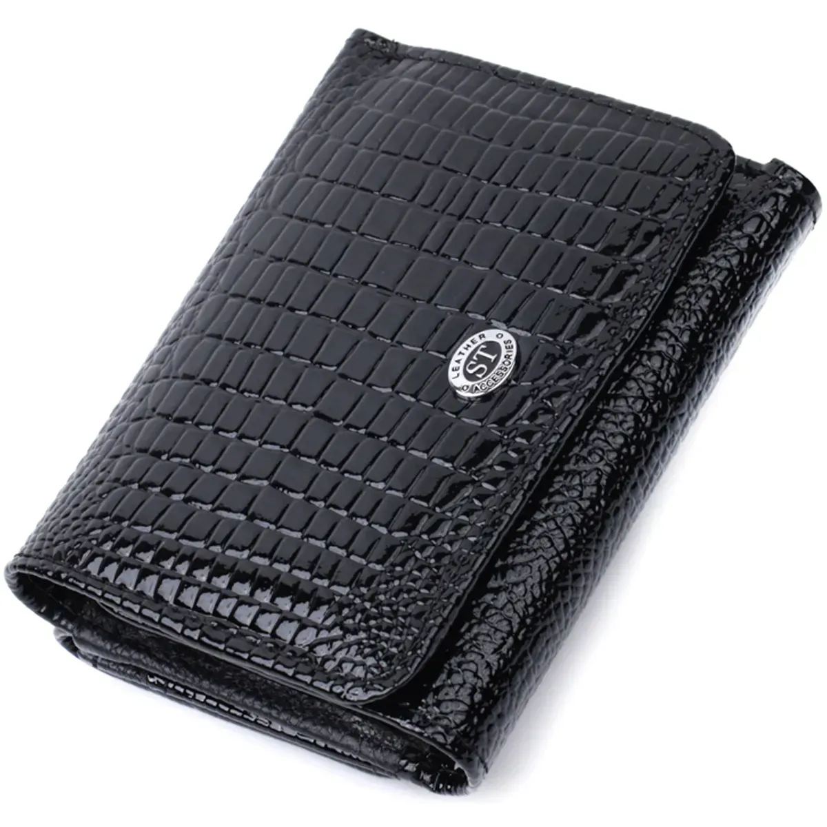 Жіночий стильний гаманець із фактурної натуральної шкіри ST Leather 22732 Чорний