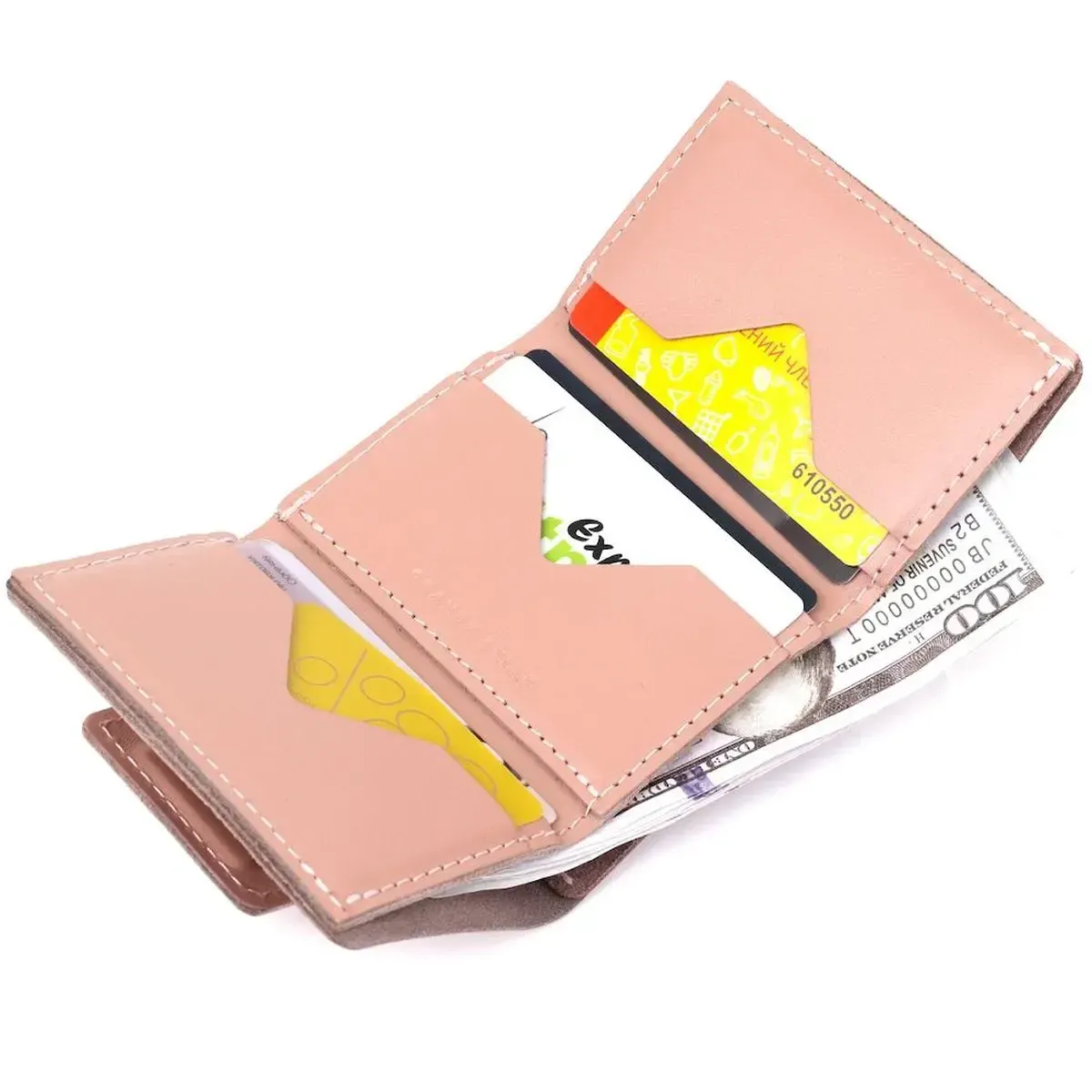 Ніжне жіноче портмоне компактного розміру, яке без особливих труднощів поміститься в будь-яку сумку, рюкзак або кишеню. Матеріал виготовлення - натуральна шкіра високого класу. Колір виробу – ніжно рожевий. Цей портмоне може стати чудовим подарунком близькій людині на будь-яке свято.