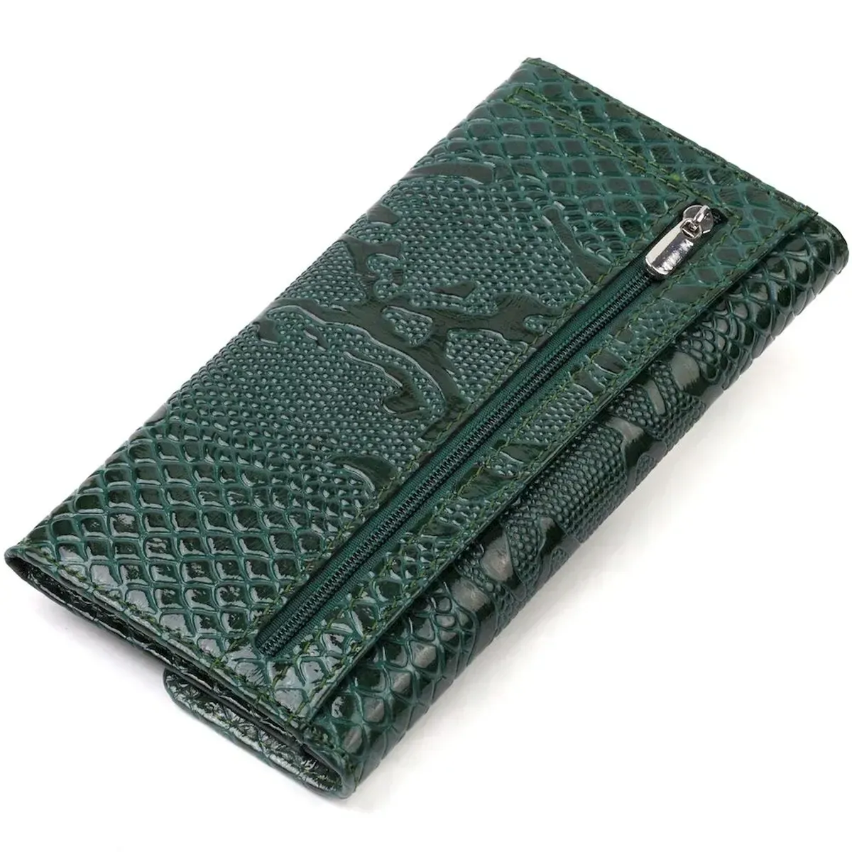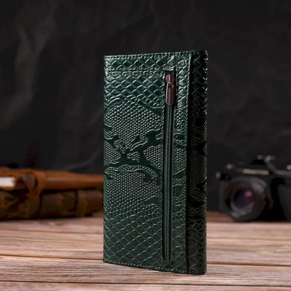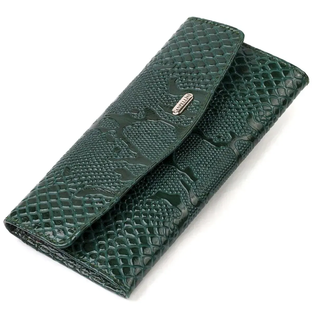 Жіноче лаковане портмоне з натуральної шкіри з тисненням під змію CANPELLINI 21694 Зелене