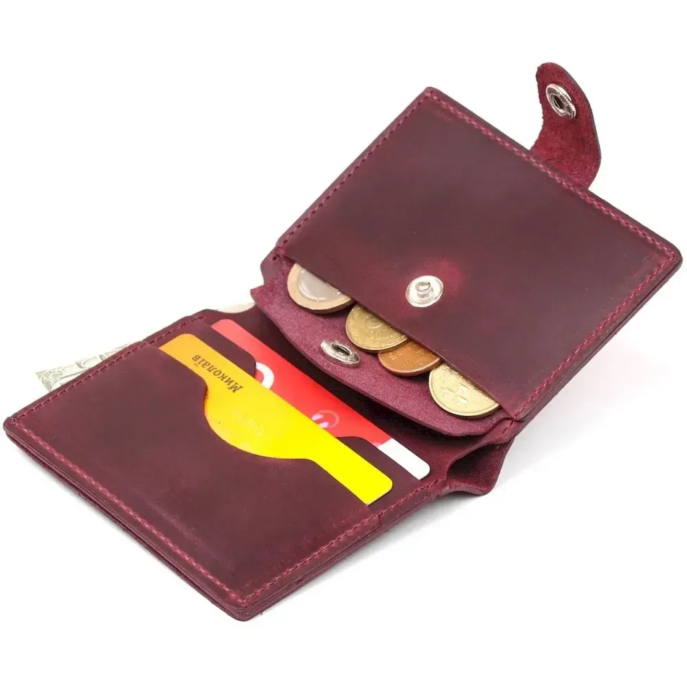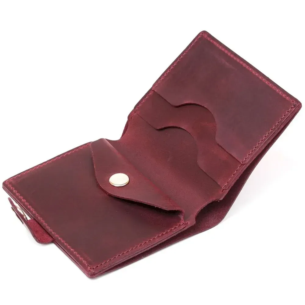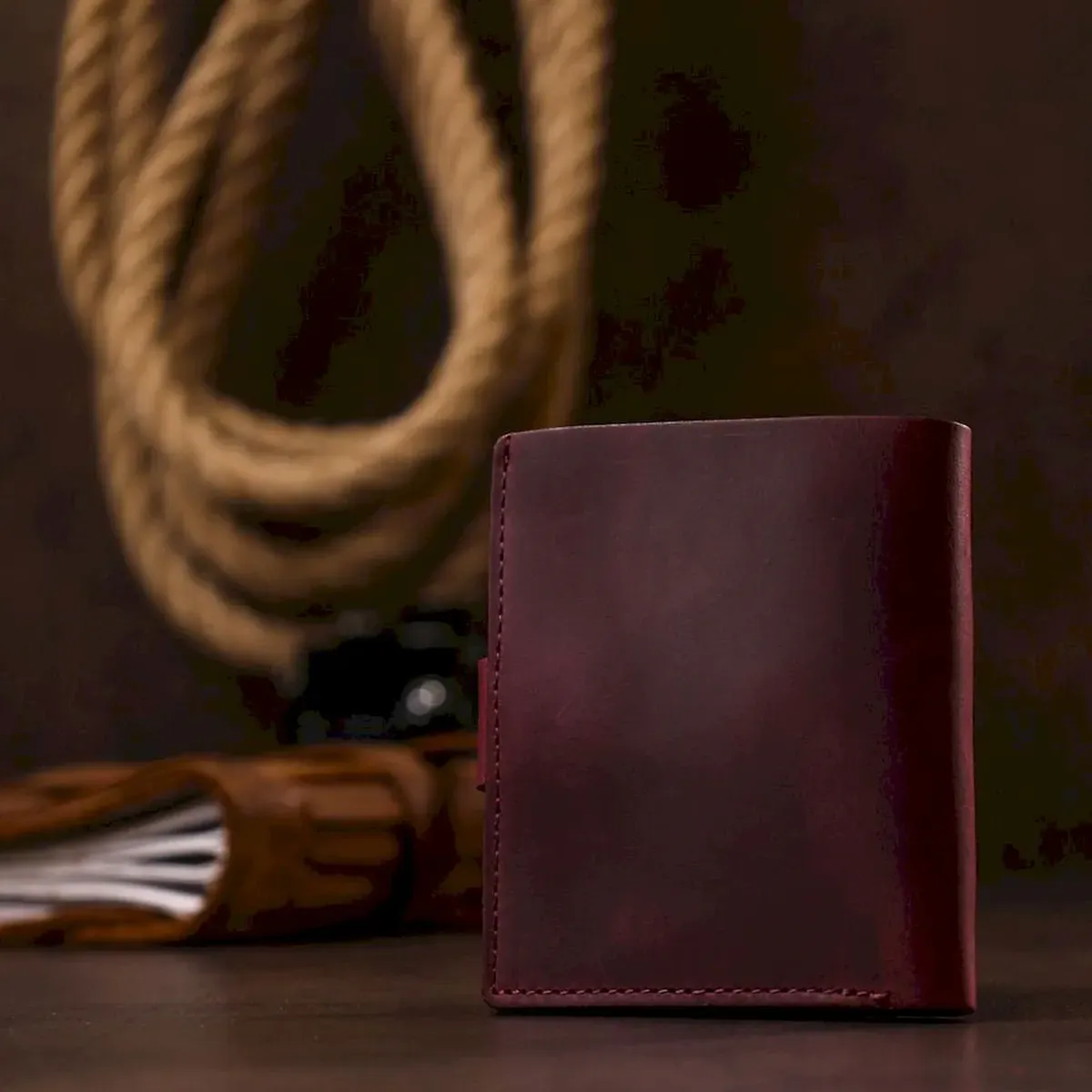 Чудове жіноче портмоне у темно-вишневому кольорі, що виглядає дуже стильно та красиво. Має гладку матову фактуру, яка дуже приємна на дотик. Матеріал виготовлення – натуральна стійка до зносу шкіра високого класу. Закривається аксесуар на хлястику з кнопкою. Такий портмоне чудово підійде на подарунок на будь-яке свято.