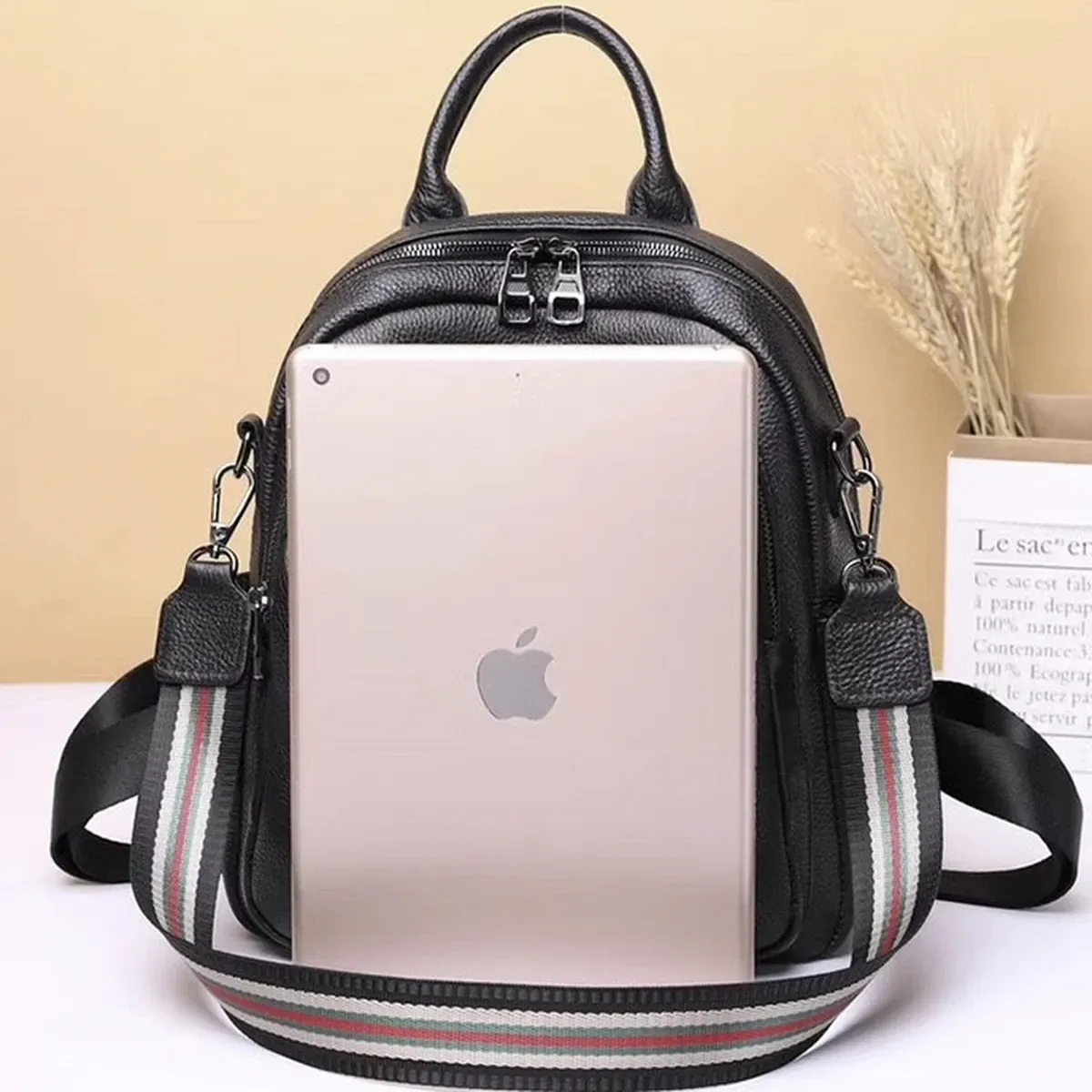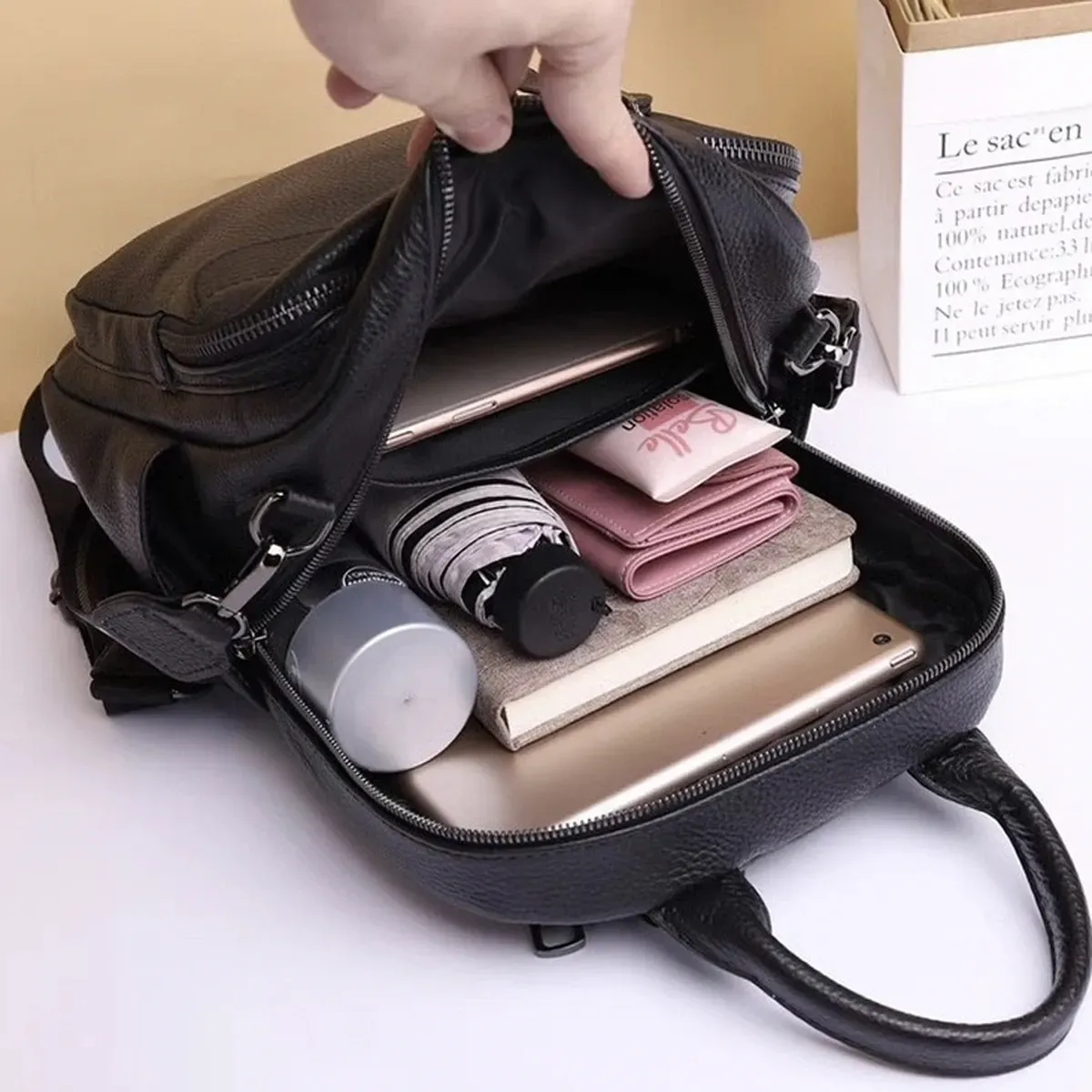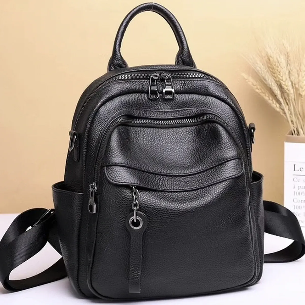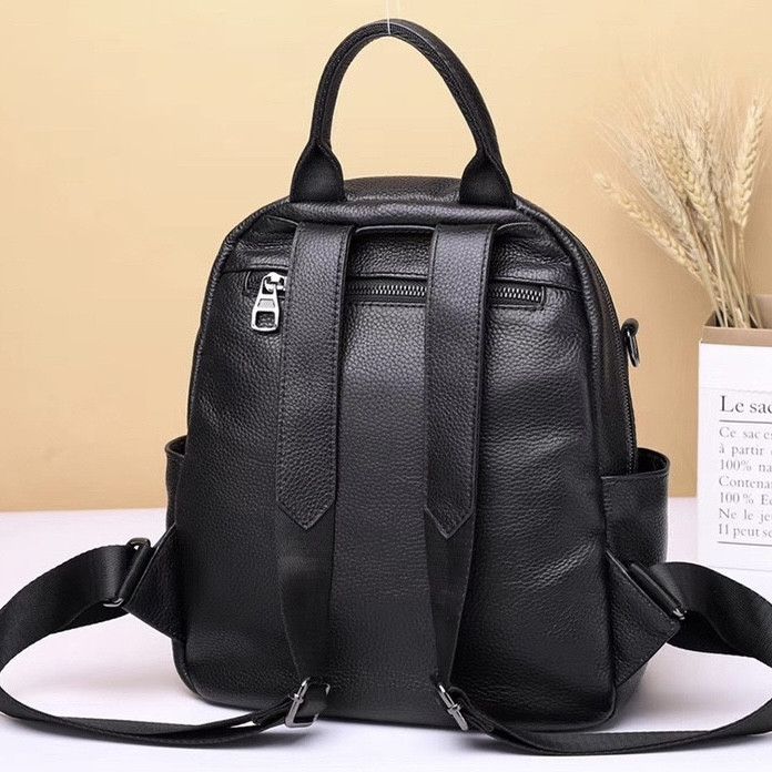 Стильний аксесуар для дівчат і жінок, необхідний для повсякденного життя, яка стає динамічнішою, активнішою та швидкіснішою. У такий практичний і функціональний рюкзак дасть змогу розмістити багато різноманітних речей. Виготовлений із натуральної шкіри, у практичному чорному кольорі, який буде доречний у будь-якій колірній гамі гардероба. Вміщує документи формату А5.