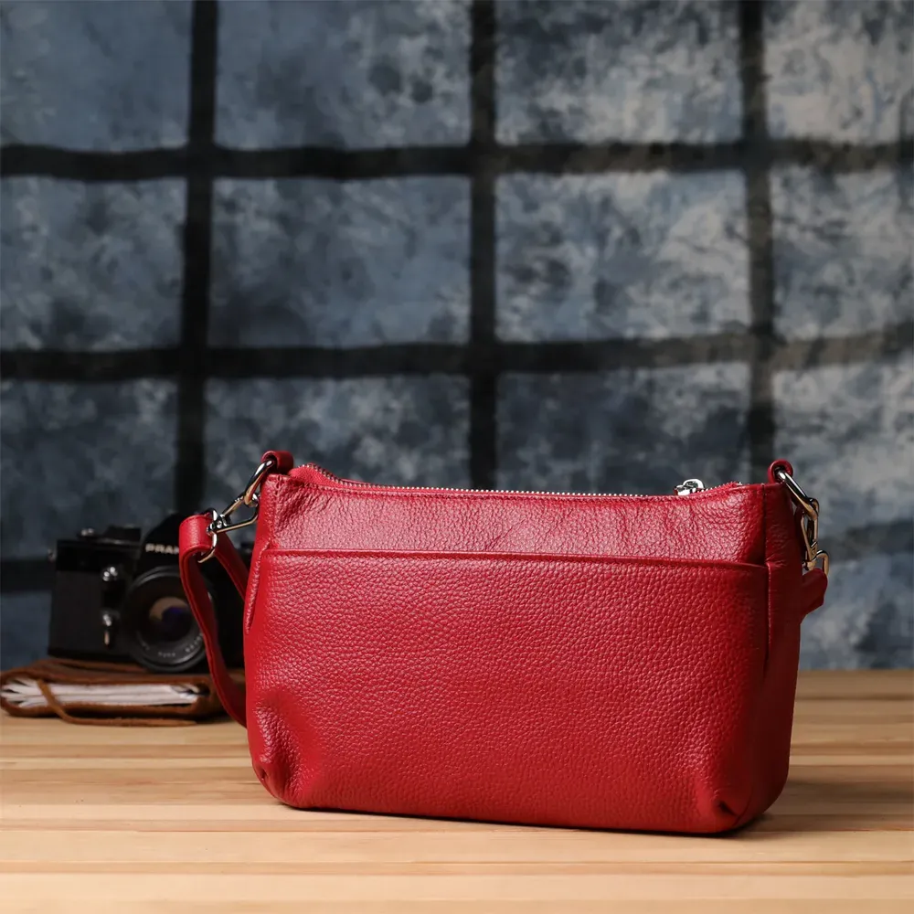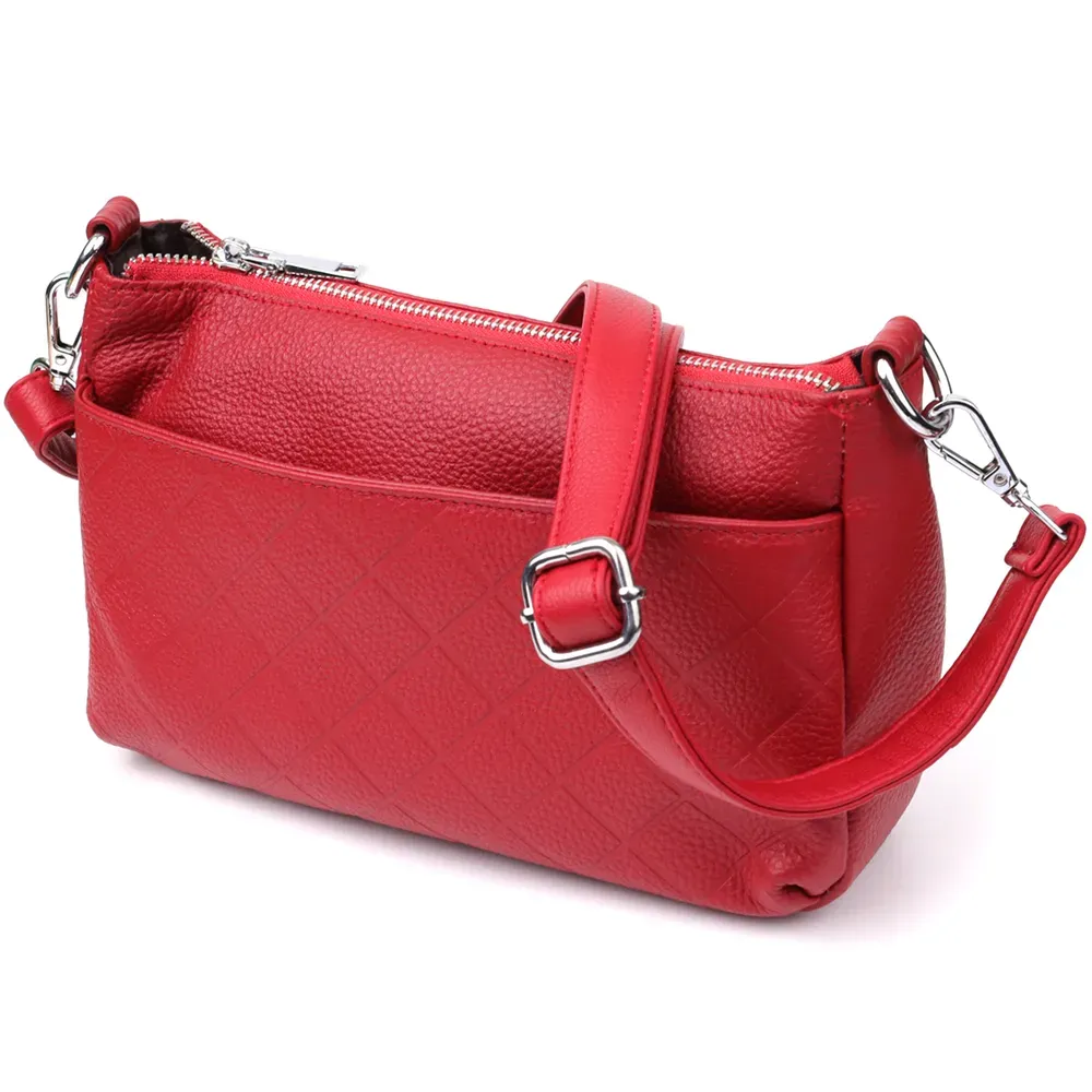 Жіноча шкіряна сумка червоного кольору з двома ремінцями яскравий акцент у класичному виконанні. Ця стильна модель виконана з натуральної шкіри у виразному червоному відтінку, який додає впевненості образу та підкреслює індивідуальність. Сумка ідеально підійде тим, хто віддає перевагу лаконічному, але ефектному стилю.
