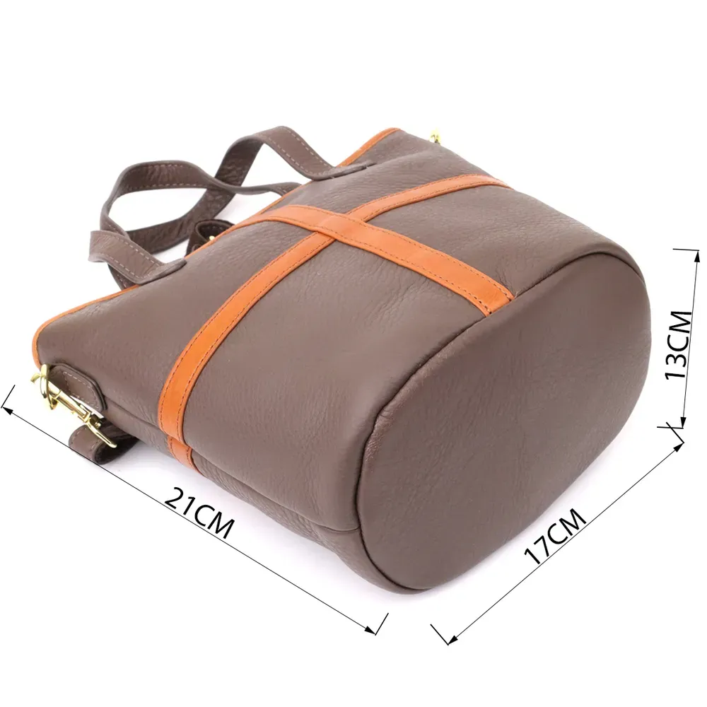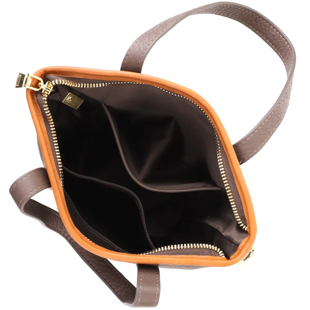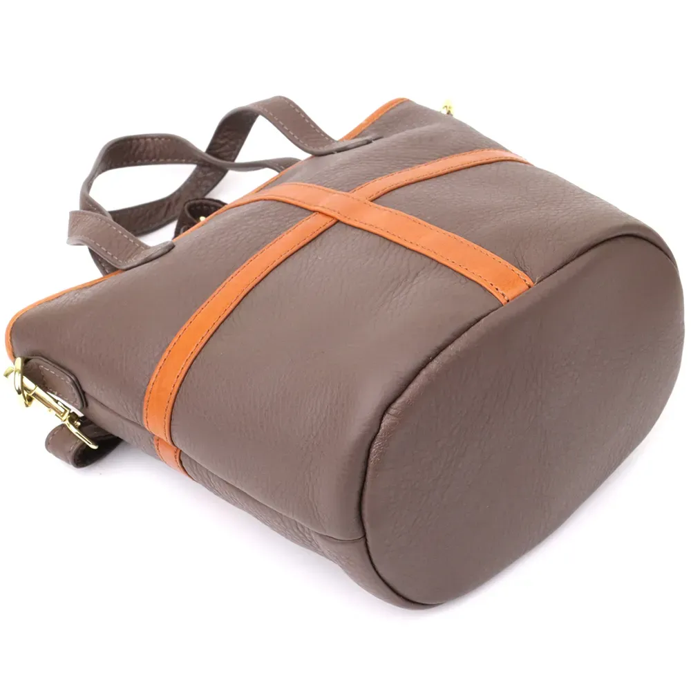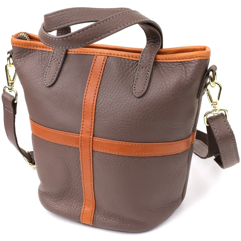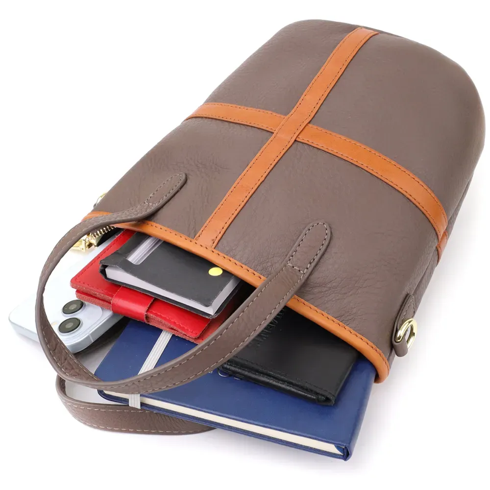 Жіноча шкіряна сумка з коричневою вставкою на лицьовій стороні Vintage 22999 Бежево-сірий