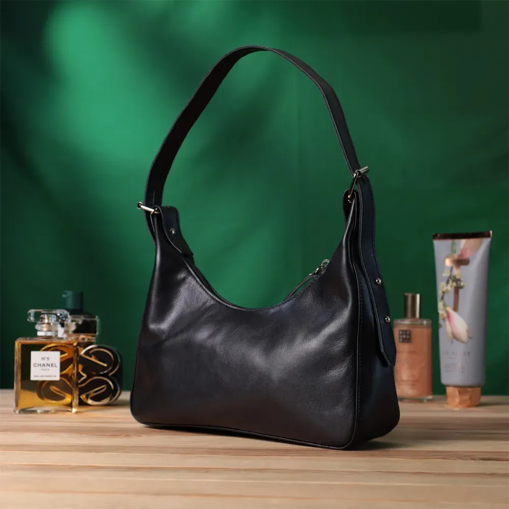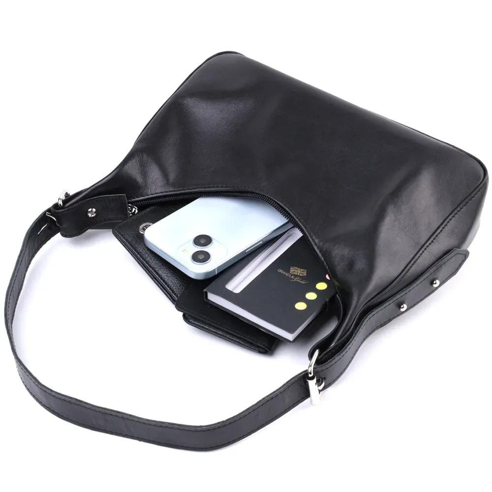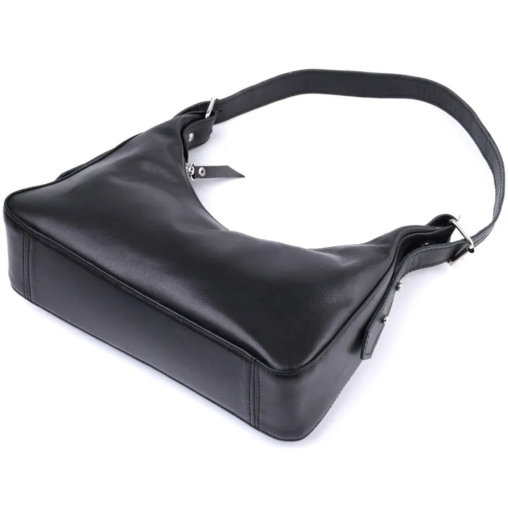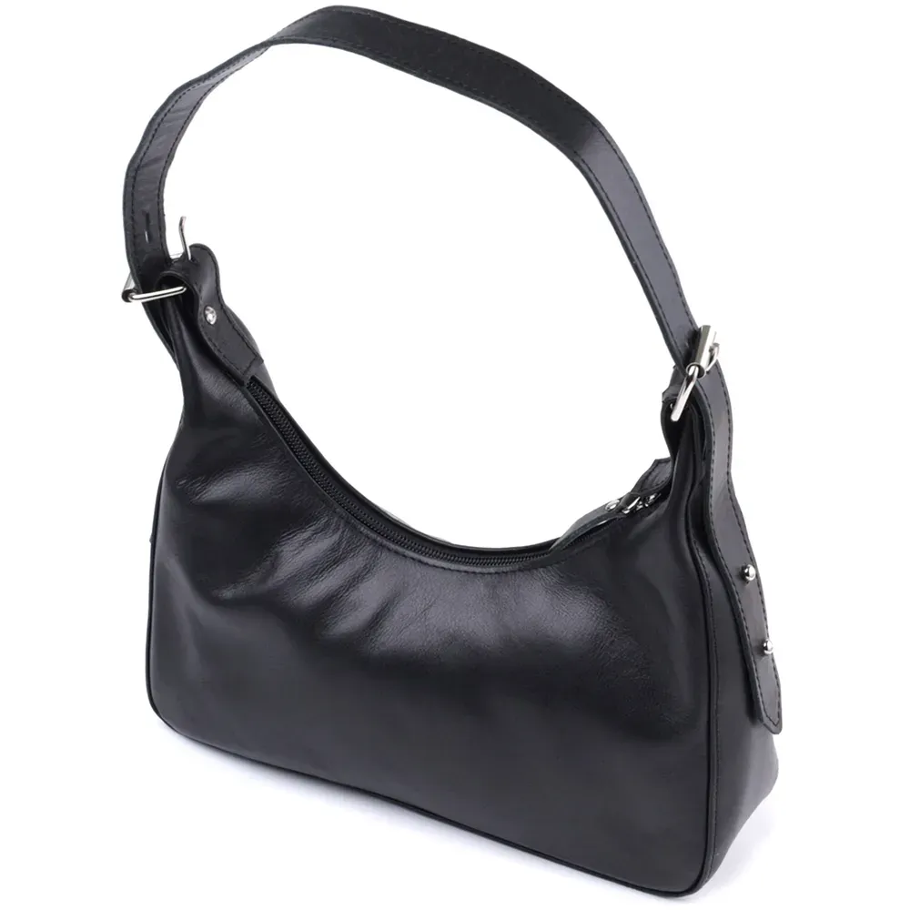 Жіноча сумка багет з регульованим ременем з гладкої натуральної шкіри Shvigel 22834 Чорна