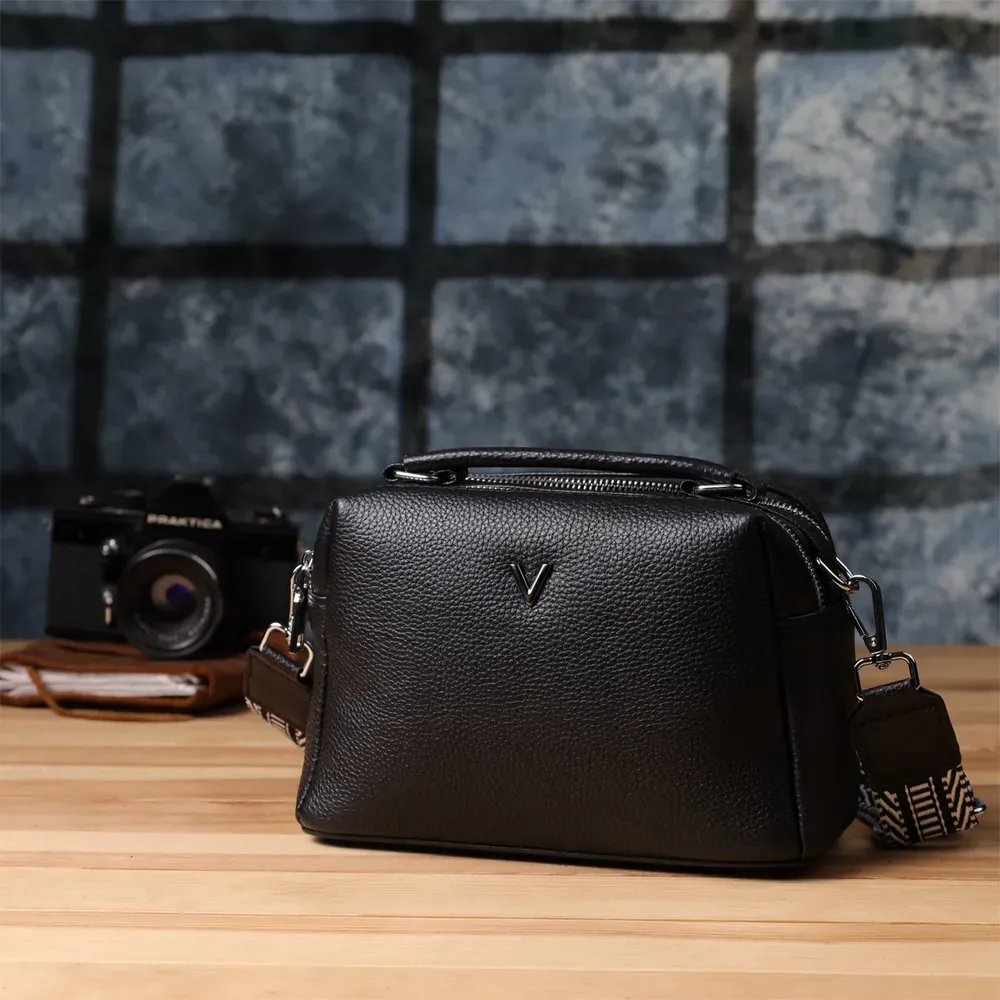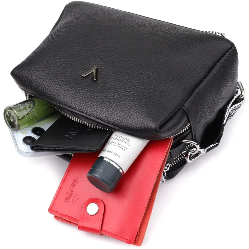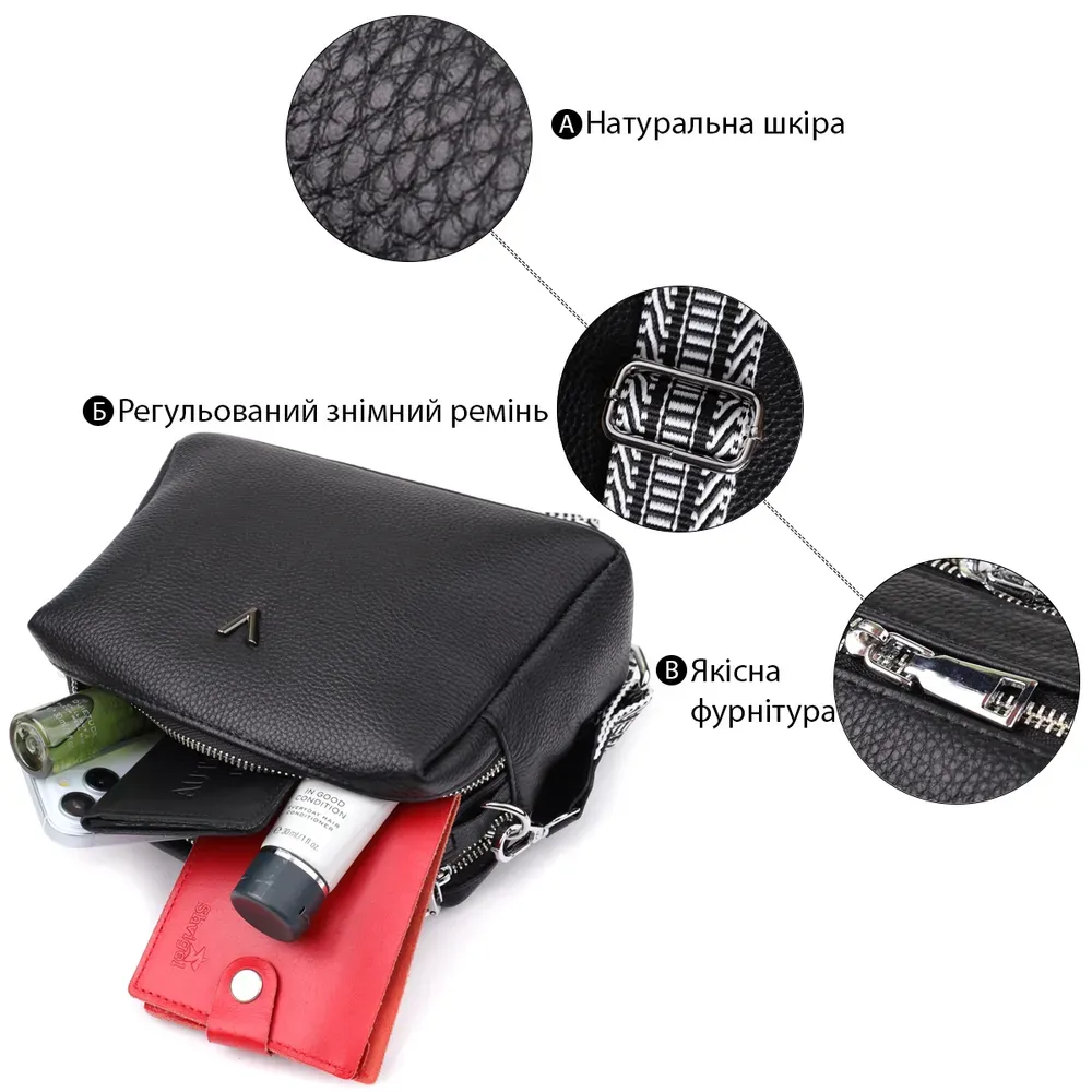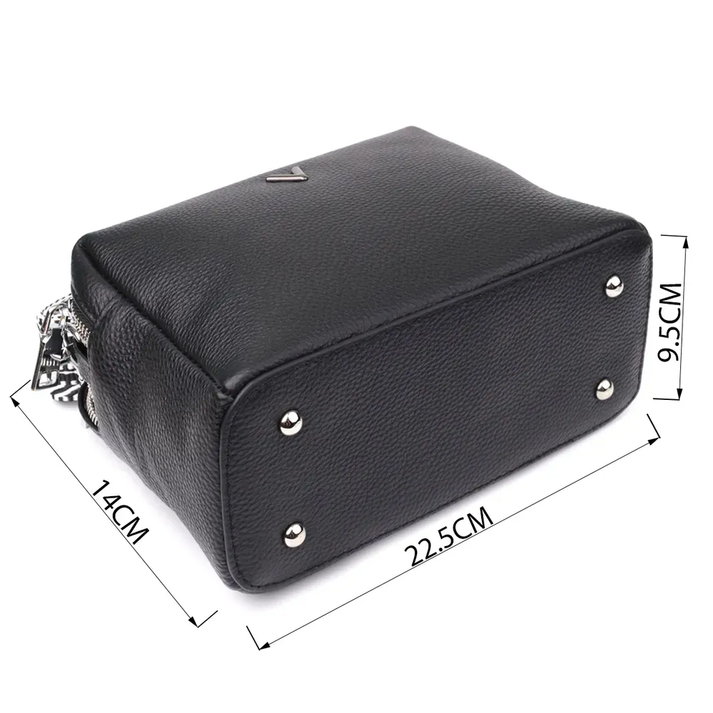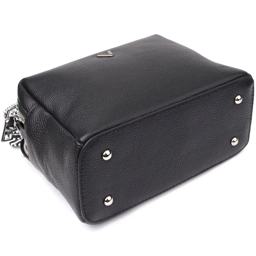 Стильна жіноча шкіряна сумка чорного кольору – практичність, комфорт та сучасний акцент. Ця елегантна модель виконана з натуральної шкіри в універсальному чорному кольорі, який легко поєднується з будь-яким одягом та підходить для будь-якого сезону. Лаконічний дизайн доповнюється функціональністю та зносостійкими елементами, роблячи сумку чудовим варіантом на кожен день.