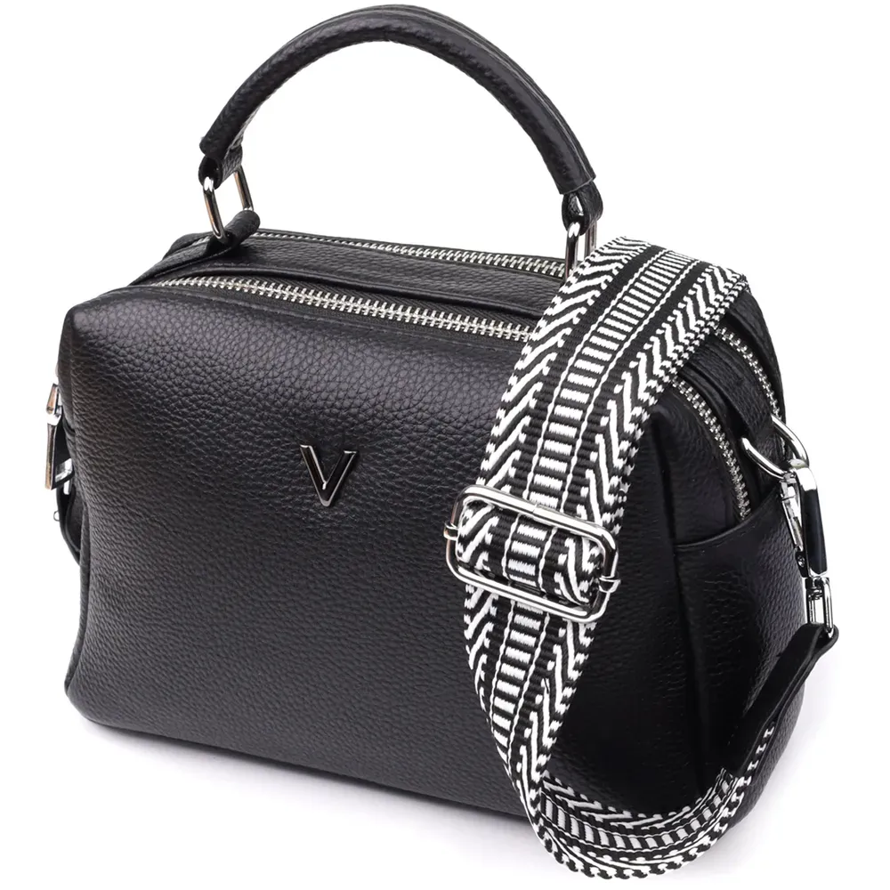 Жіноча сумка на два відділення з натуральної шкіри Vintage 22919 Чорний