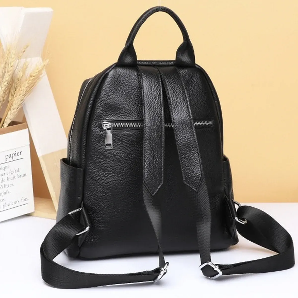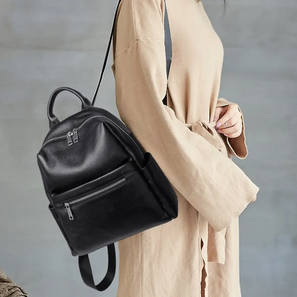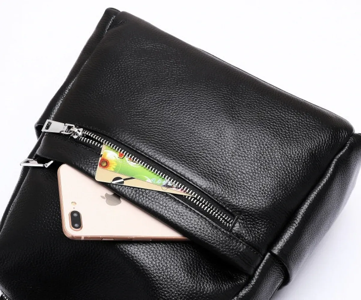 Стильний аксесуар для дівчат і жінок, необхідний для повсякденного життя, яка стає динамічнішою, активнішою та швидкіснішою. У такий практичний і функціональний рюкзак дасть змогу розмістити багато різноманітних речей. Виготовлений із натуральної шкіри, у практичному чорному кольорі, який буде доречний у будь-якій колірній гамі гардероба. Вміщує документи формату А5.