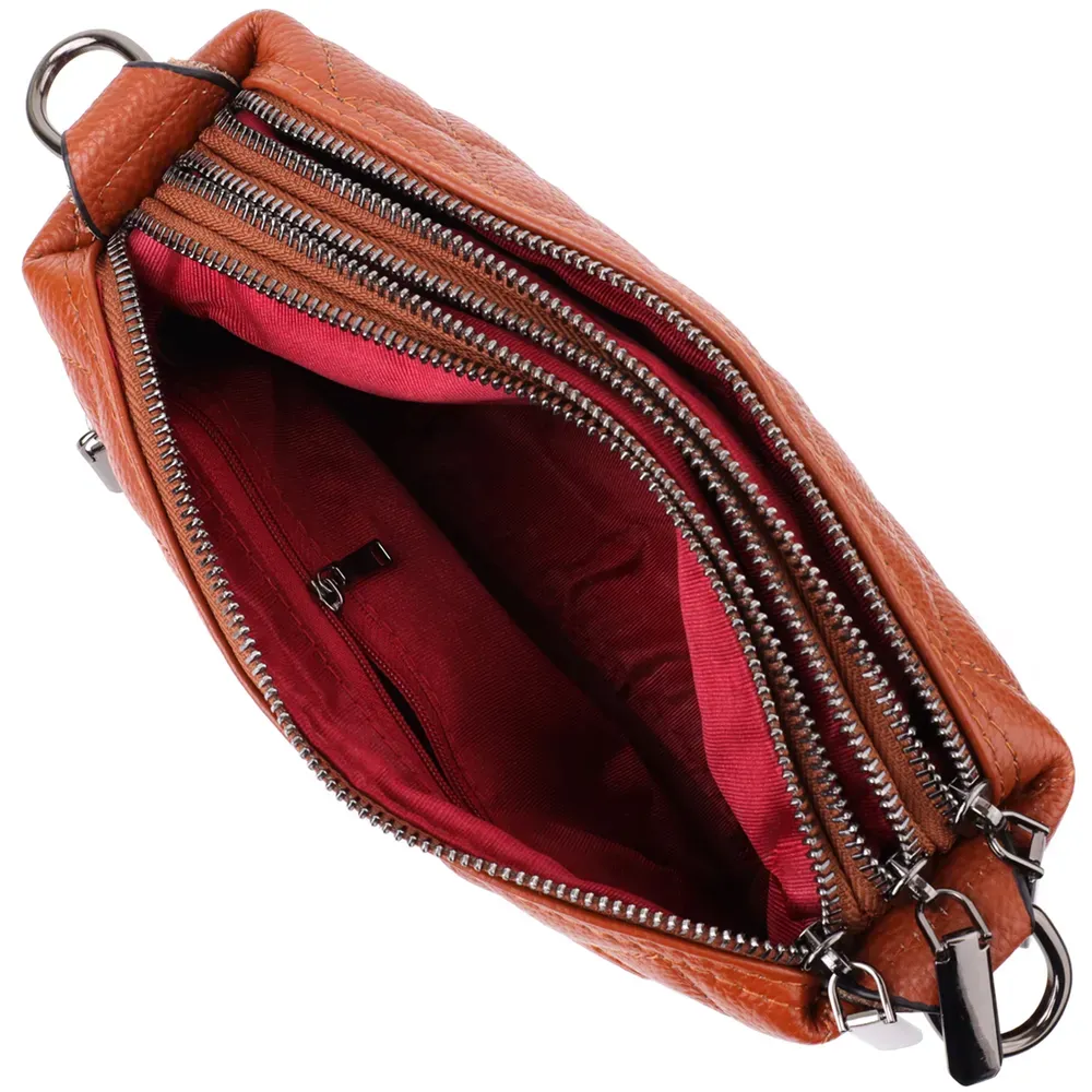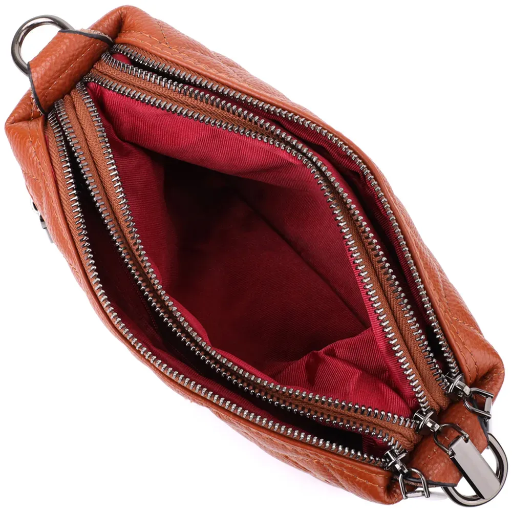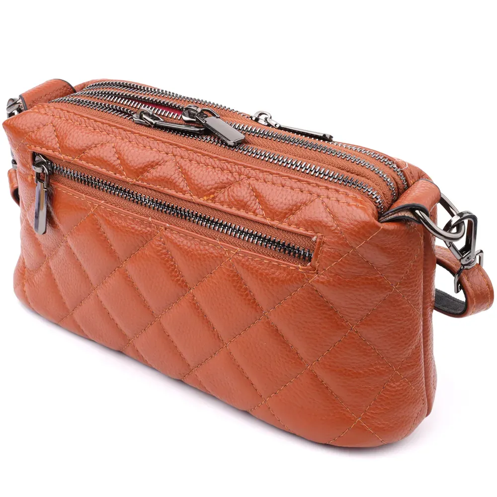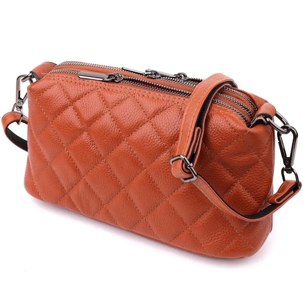 Жіноча сумка прошита модними ромбами з натуральної шкіри Vintage 15143 Рудий