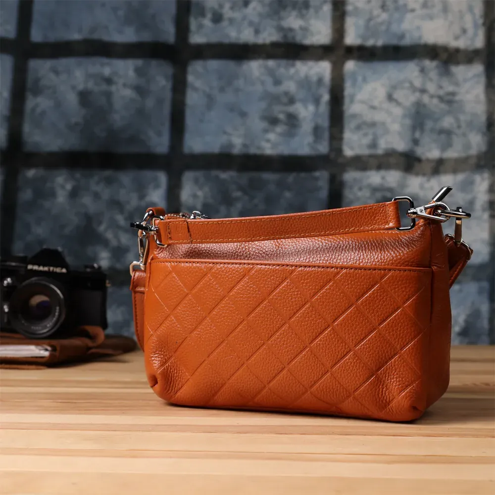 Жіноча сумка з натуральної шкіри з двома ремінцями Vintage 22929 Рудий