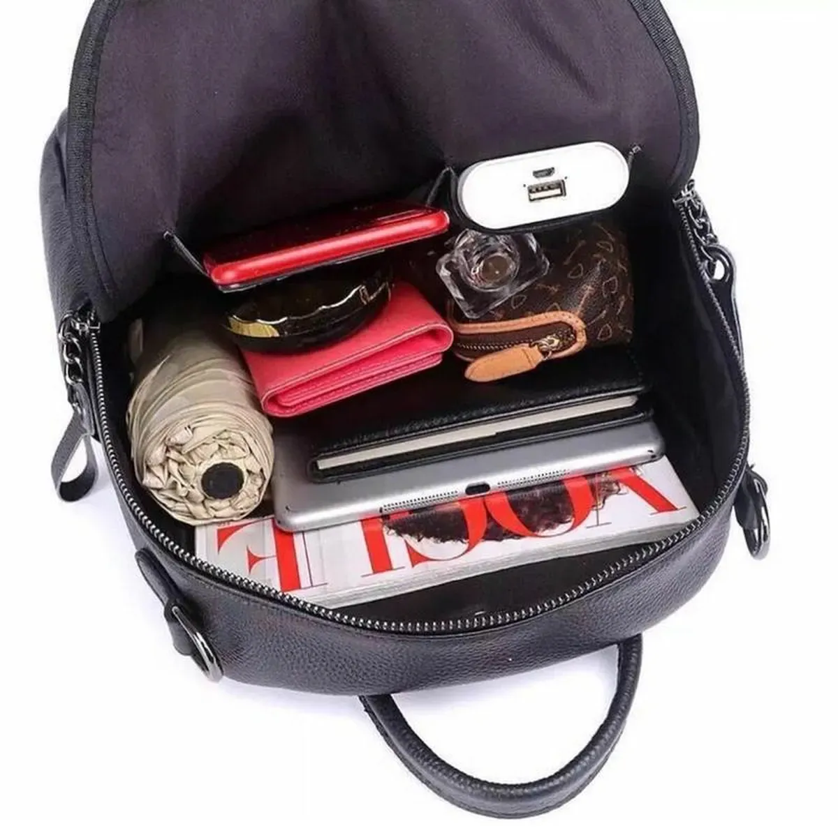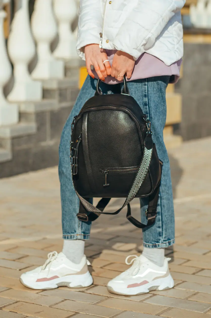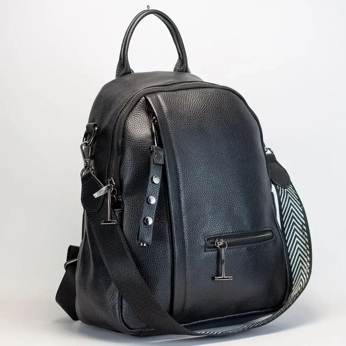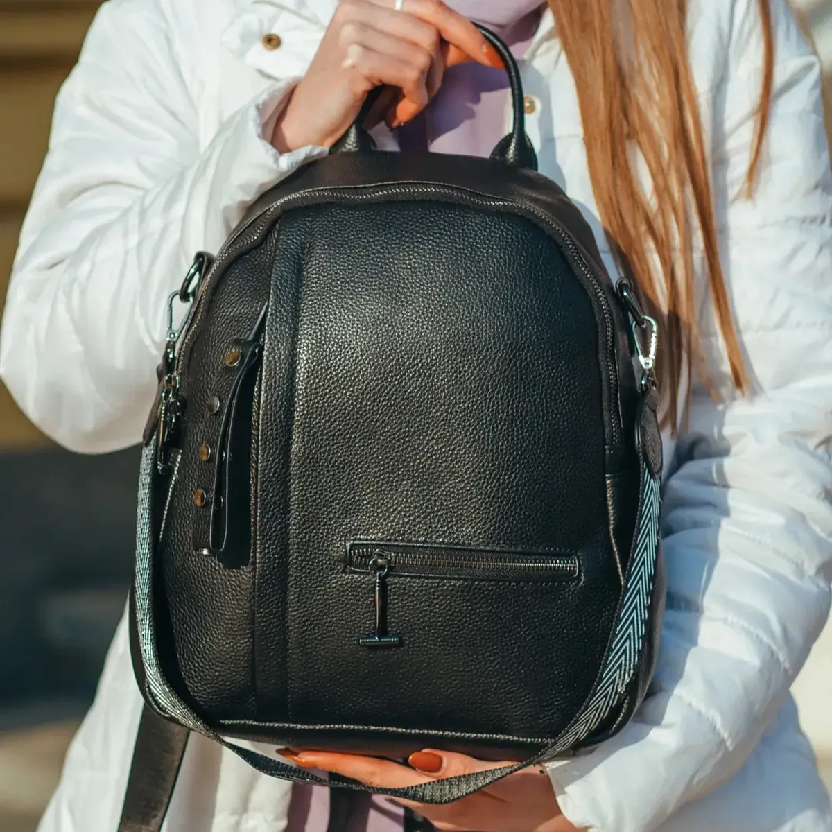 Жіночий шкіряний рюкзак міський 23х32х13, сумка для міста, подорожей та відпочинку, чорна