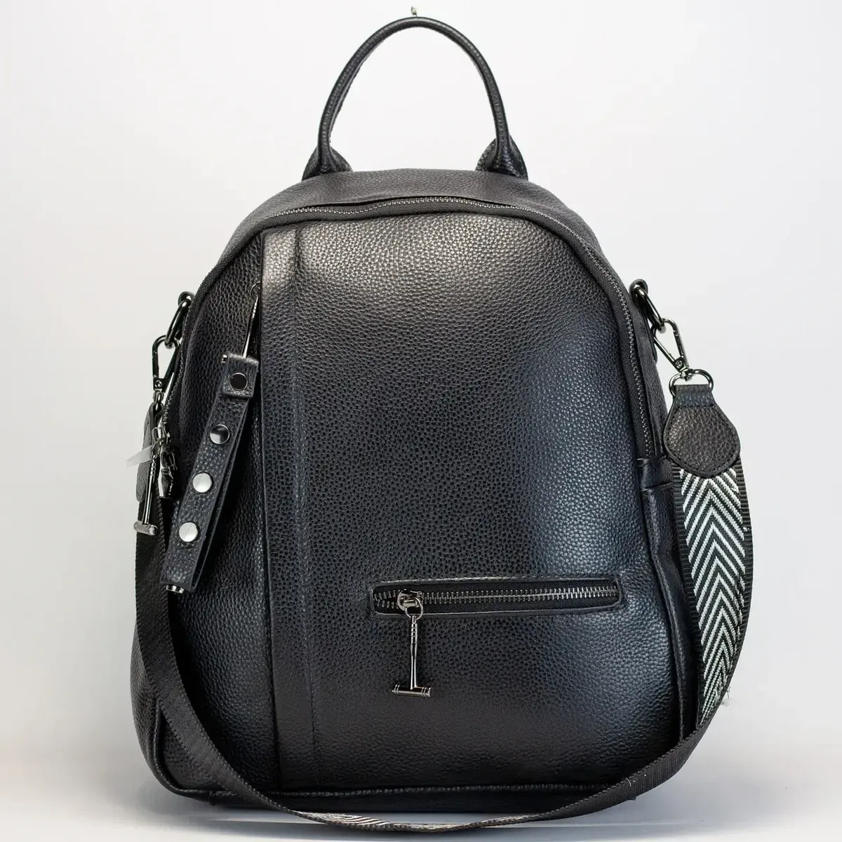 Якісний шкіряний міський рюкзак у чорному кольорі.