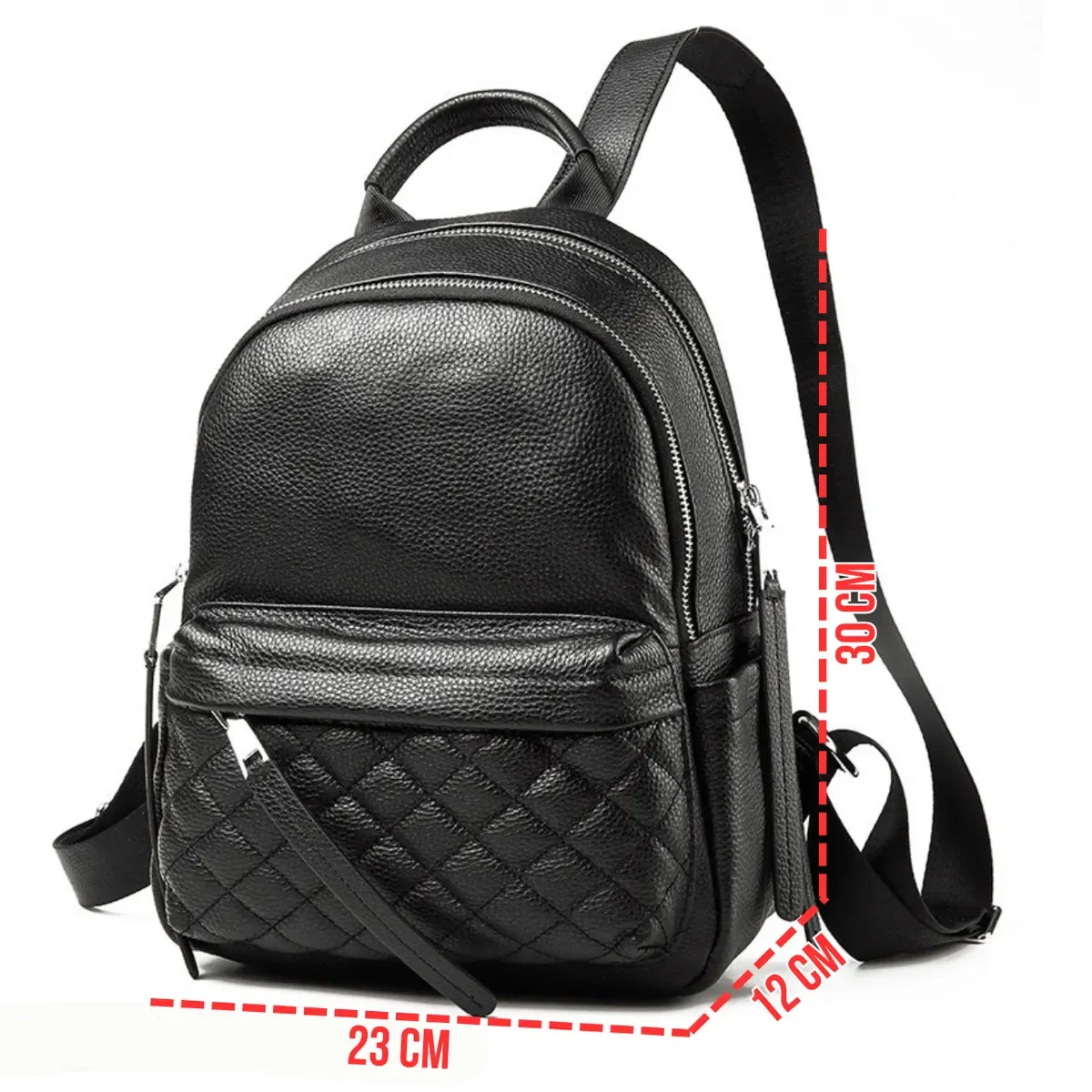 Жіночий шкіряний рюкзак міський 30х23х12, наплічник з натуральної шкіри, чорний