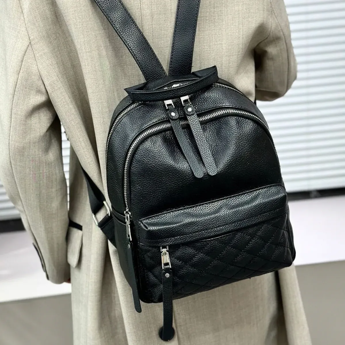 Стильний аксесуар для дівчат і жінок, необхідний для повсякденного життя, яка стає динамічнішою, активнішою та швидкіснішою. У такий практичний і функціональний рюкзак дасть змогу розмістити багато різноманітних речей. Виготовлений із натуральної шкіри, у практичному чорному кольорі, який буде доречний у будь-якій колірній гамі гардероба. Вміщує документи формату А5.