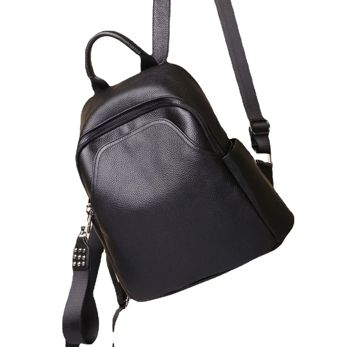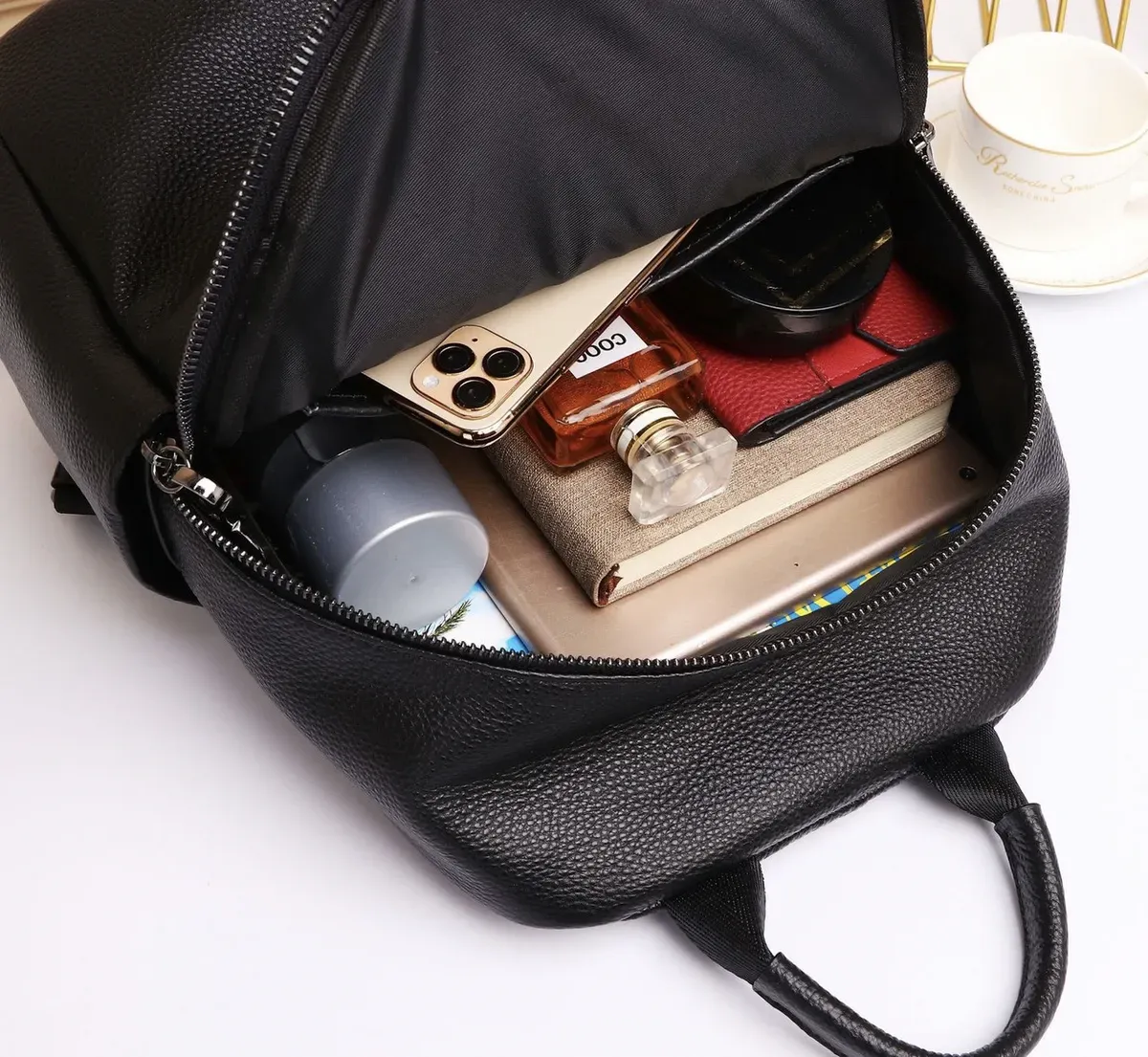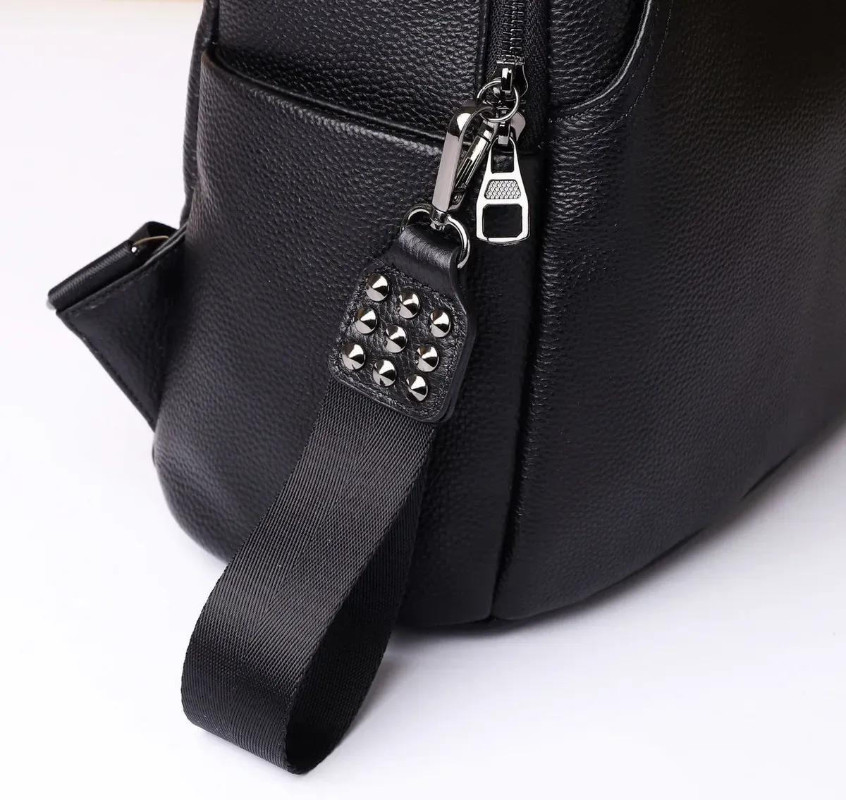 Стильний аксесуар для дівчат і жінок, необхідний для повсякденного життя, яка стає динамічнішою, активнішою та швидкіснішою. У такий практичний і функціональний рюкзак дасть змогу розмістити багато різноманітних речей. Виготовлений із натуральної шкіри, у практичному чорному кольорі, який буде доречний у будь-якій колірній гамі гардероба. Вміщує документи формату А5.