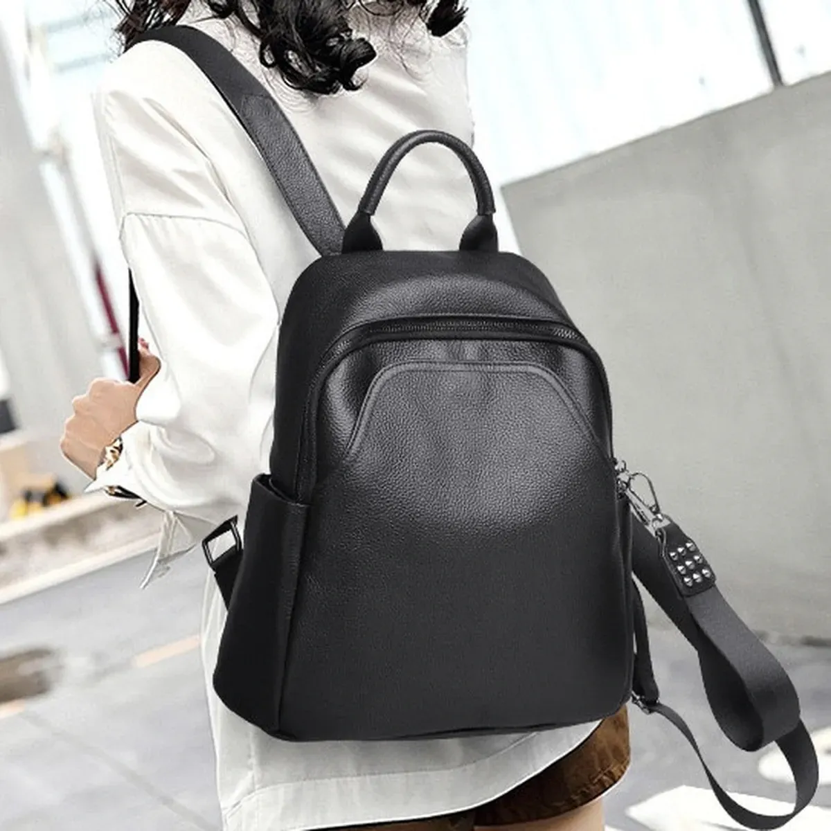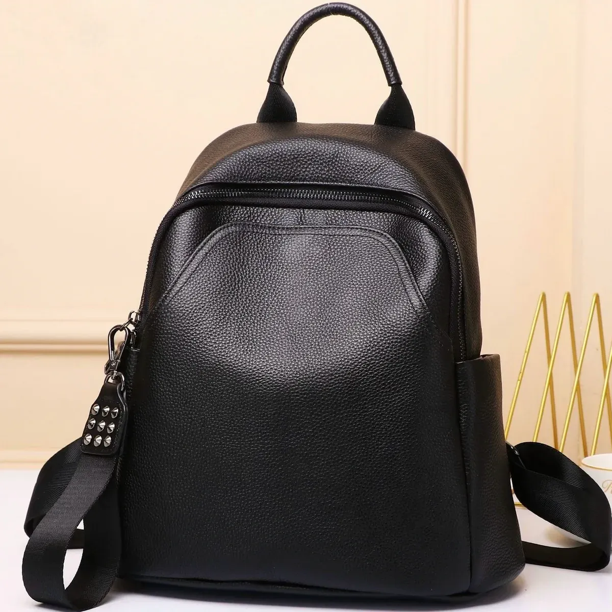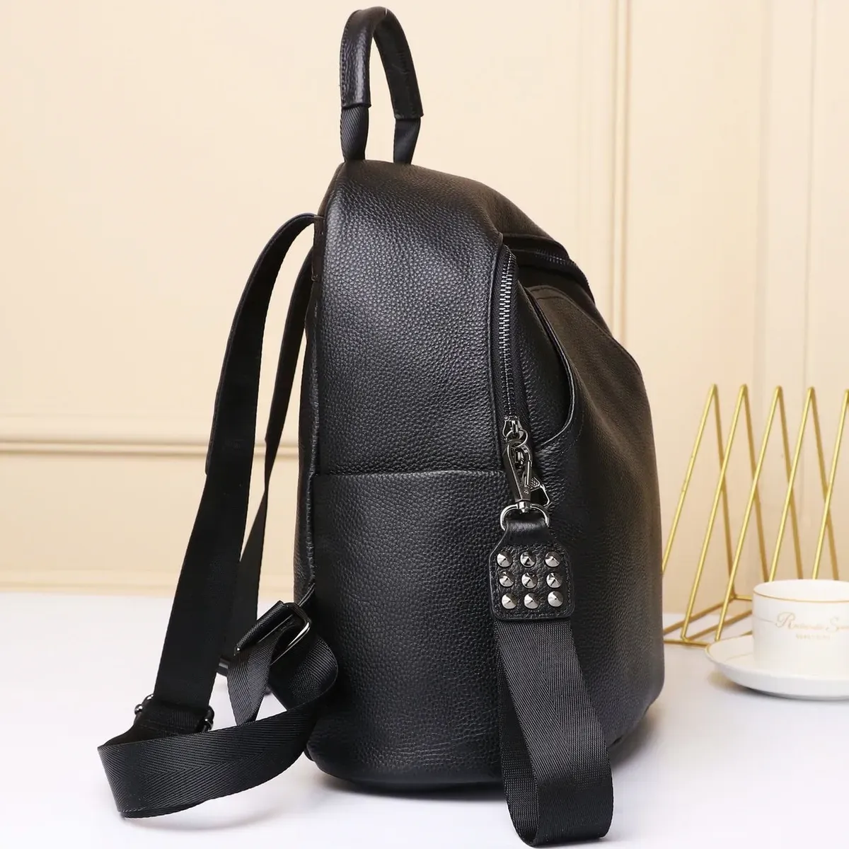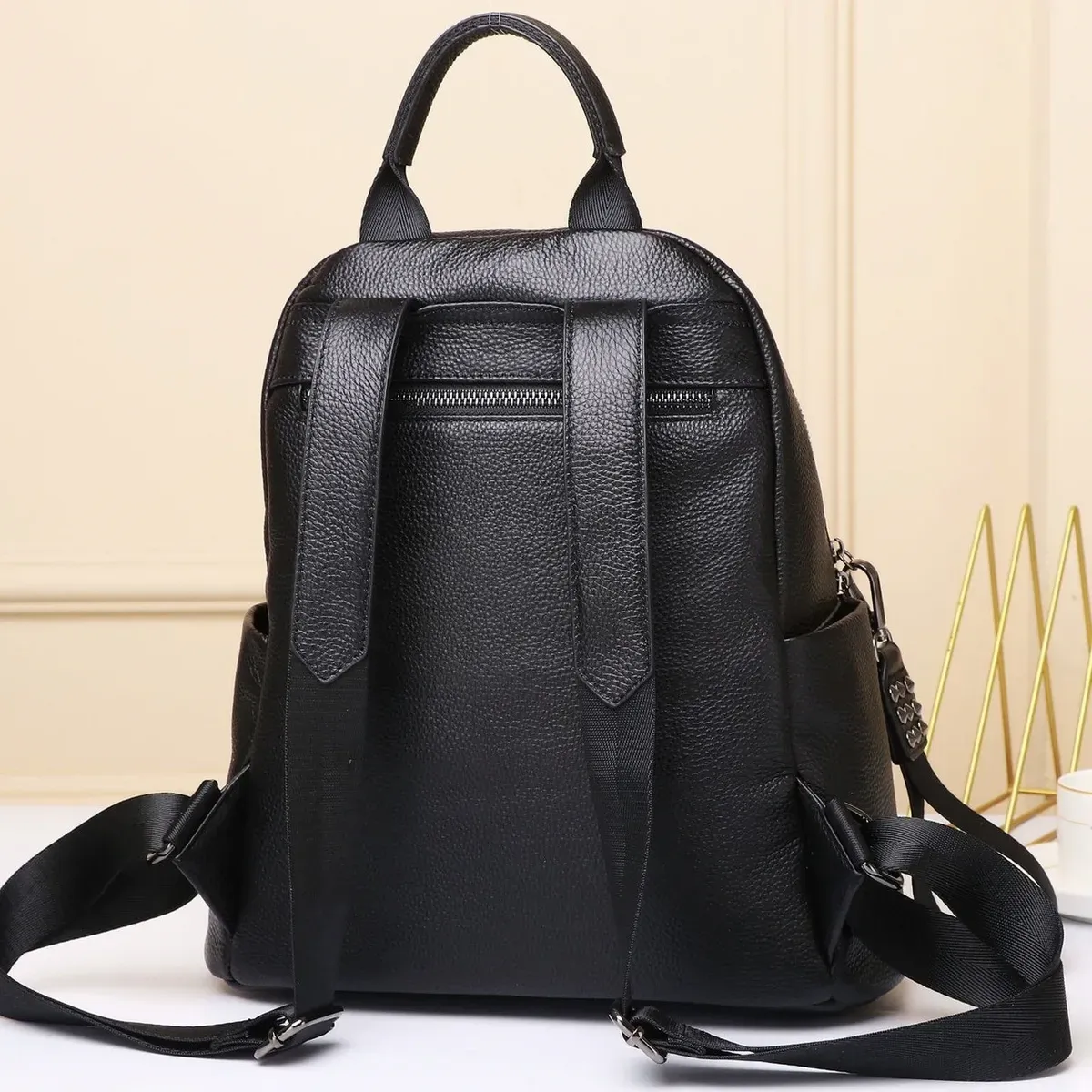 Стильний аксесуар для дівчат і жінок, необхідний для повсякденного життя, яка стає динамічнішою, активнішою та швидкіснішою. У такий практичний і функціональний рюкзак дасть змогу розмістити багато різноманітних речей. Виготовлений із натуральної шкіри, у практичному чорному кольорі, який буде доречний у будь-якій колірній гамі гардероба. Вміщує документи формату А5.