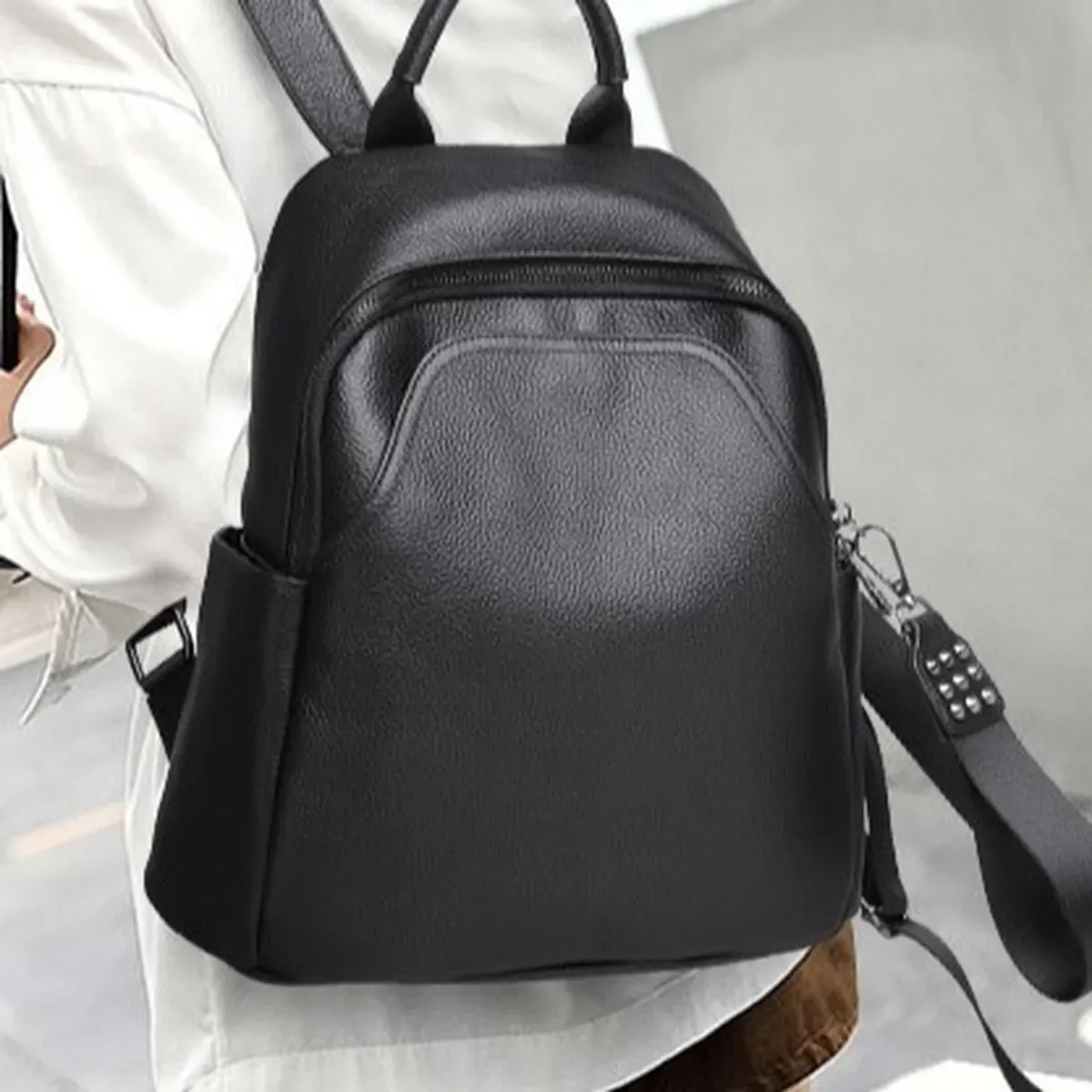 Жіночий класичний шкіряний рюкзак чорний міського типу 85378