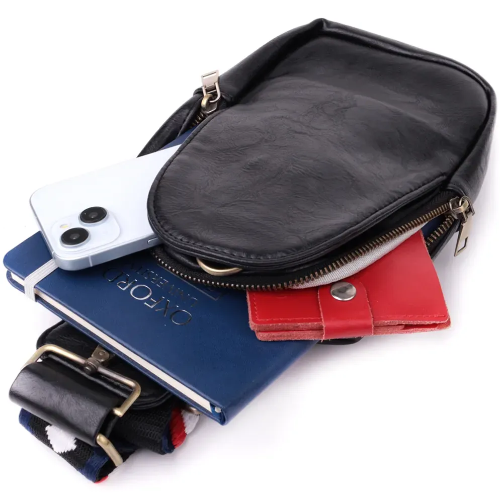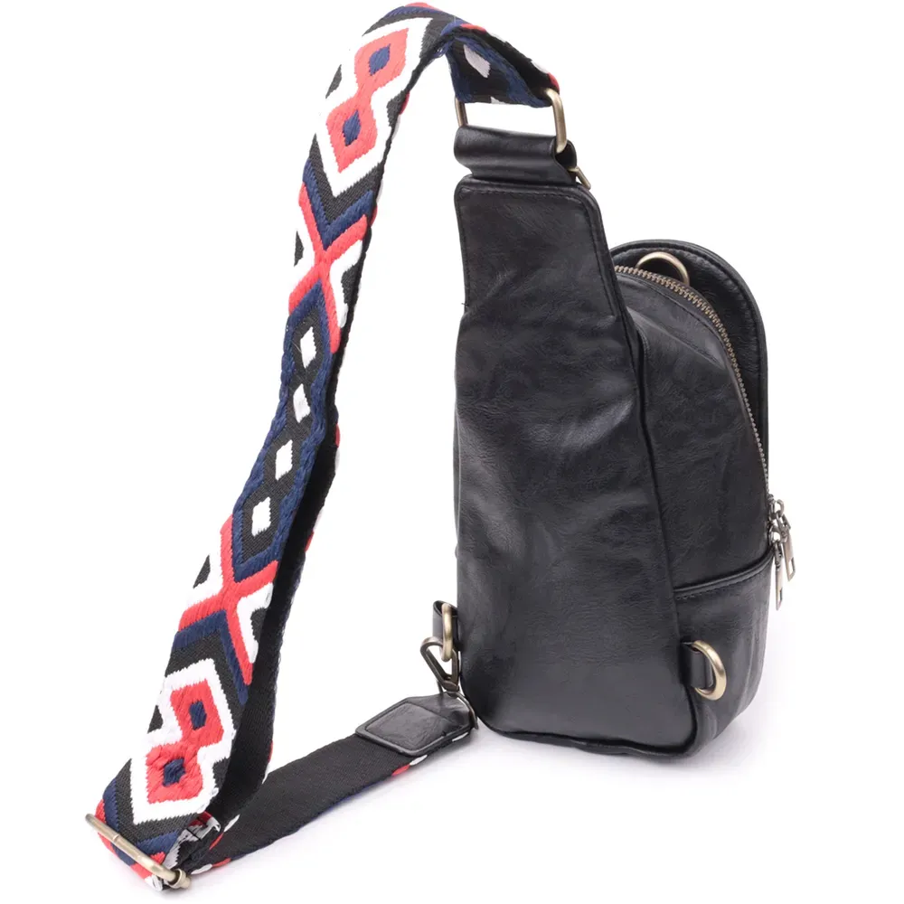 Жіночий слінг сумка через плече з екошкіри Vintage 15117 Чорний