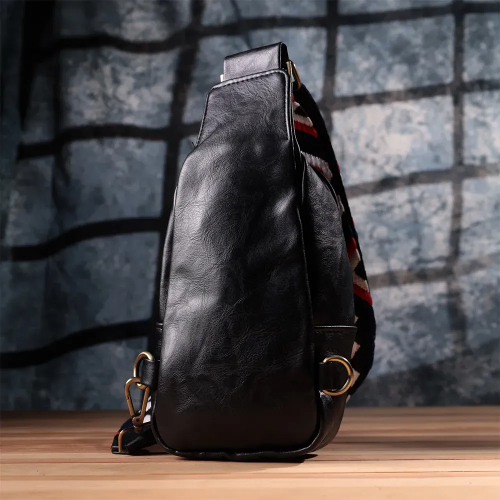 Примітна жіноча сумка через плече на кожен день із якісного екошкіри, яка є альтернативою натуральній шкірі. Дана модель складається з одного основного відділення, яке закривається на блискавку і в якому знаходяться три кишені для кредитних карток усередині, а також однієї потайної кишені на лицьовій стороні, що закривається на магніт і на карабін. Акцентом даної моделі є зручний регульований плечовий ремінець у етнічному стилі, що дуже модно вже кілька сезонів. Екошкіра – високоякісна альтернатива натуральному матеріалу, яка дуже стійка до тертя, до низьких температур, відмінно носиться на відміну від інших штучних матеріалів, а також має гіпоалергенний склад на відміну від натуральної шкіри. Мода не стоїть на місці, на зміну класичним сумкам приходять нові моделі, які обумовлені сучасним часом, саме такою є слінг сумка – зручна, практична, невелика, але містка та головне якісна.
