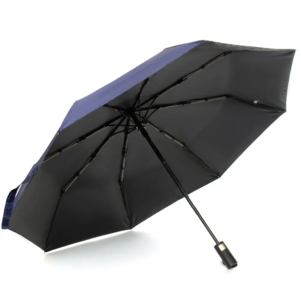 Три сложения, ветронепроницаемый купол выполнен из pongee. Вентилируемые спицы с ветрозащитой из метала + карбон (8 шт.). Купол 100 см., стержень 55 см (в сложенном состоянии 28 см).