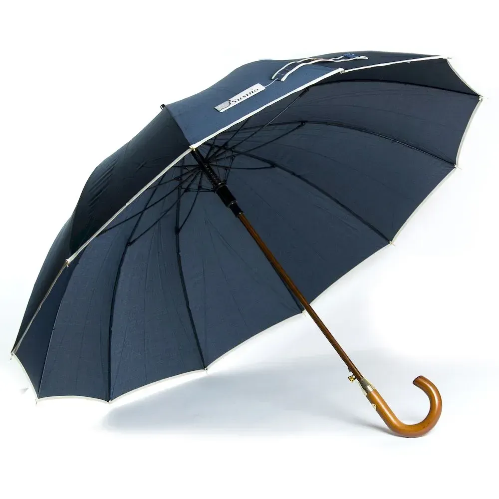 Жіноча парасолька-тростина, напівавтомат. Вітронепроникний купол виконаний з pongee. Вентильований скловолоконний каркас, 12 спиць. Дерев'яний стрижень. Дерев'яна ручка із вигином. Купол 127 см., загальна довжина 92 см.