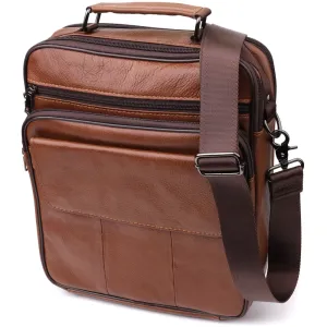 Зручна чоловіча сумка з ручкою для перенесення в руці з натуральної шкіри Vintage 23025 Світло-коричневий