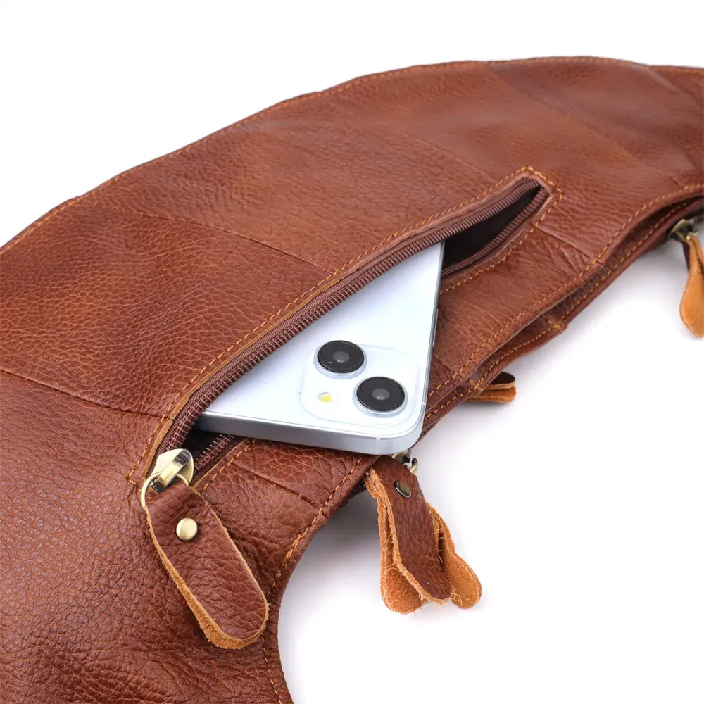Світло-коричнева шкіряна сумка через плече – це надійний та стильний супутник для активного міського життя та ділових зустрічей.