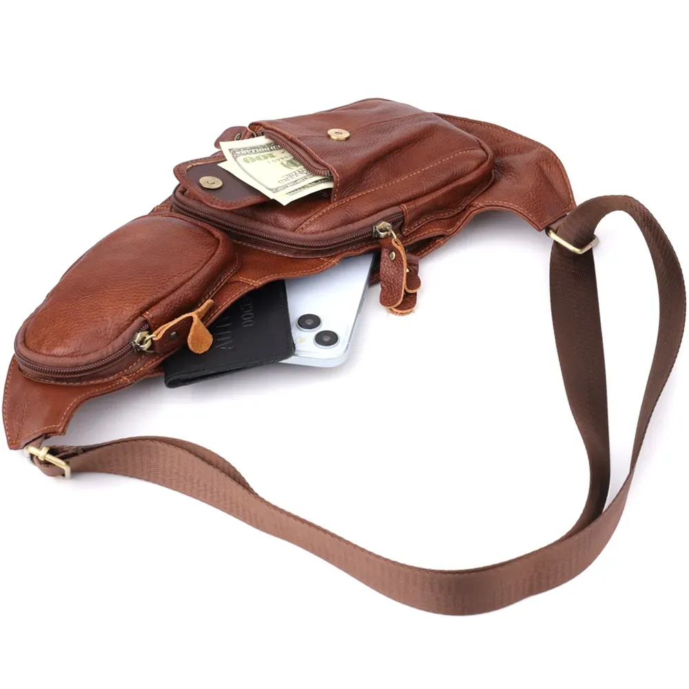 Зручна чоловіча сумка з великою кількістю кишень із натуральної шкіри Vintage 22963 Коричневий