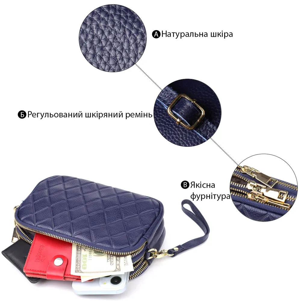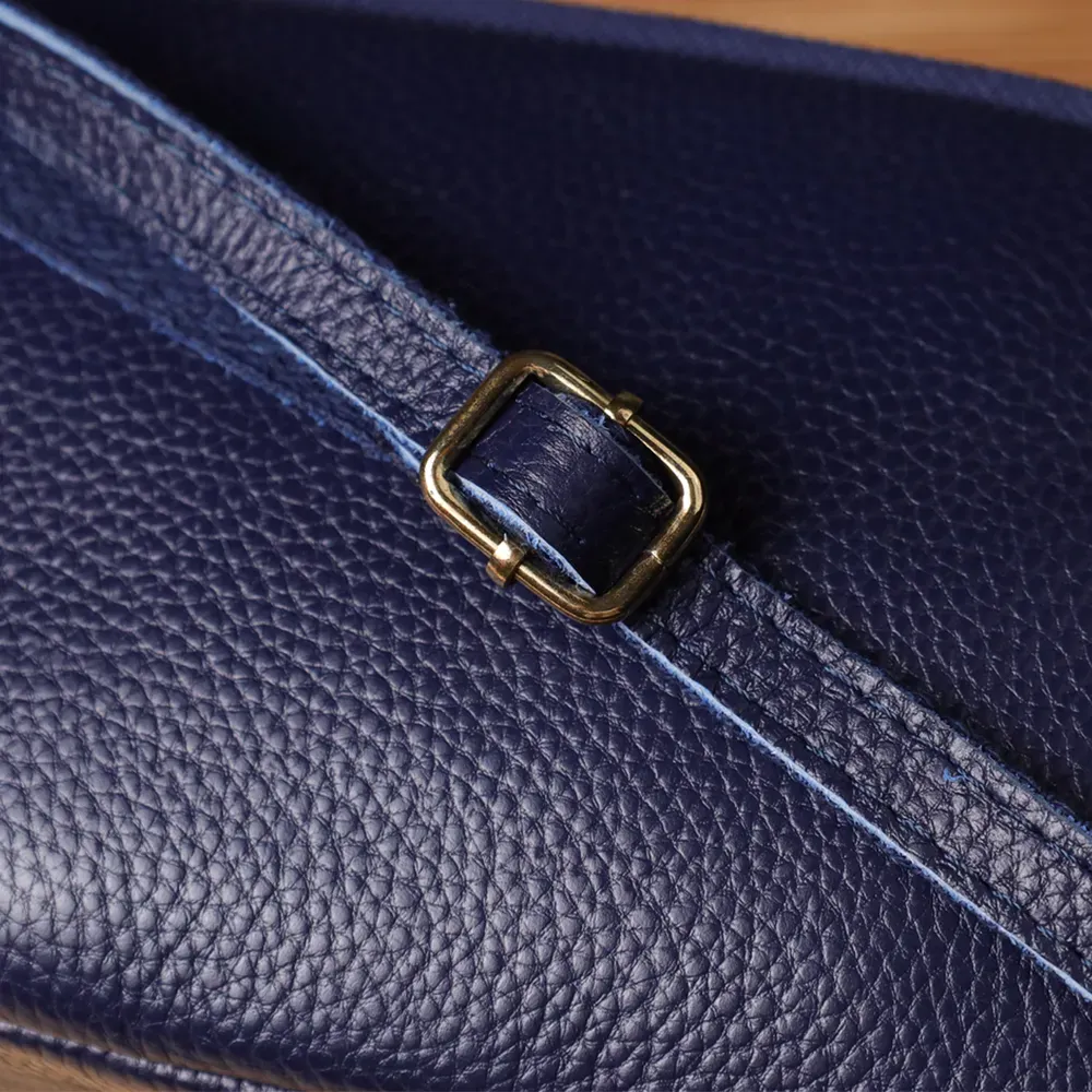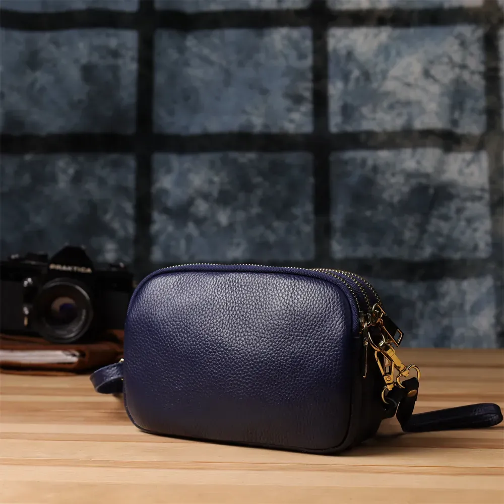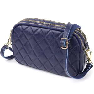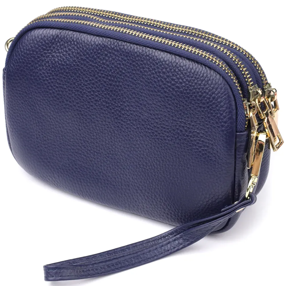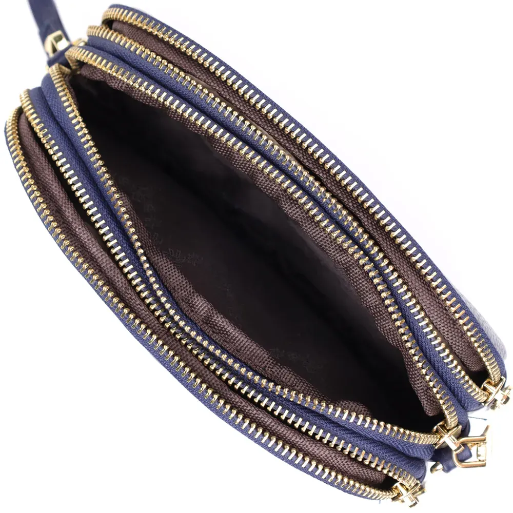 Зручна шкіряна сумка на три відділення для жінок Vintage 22892 Синій