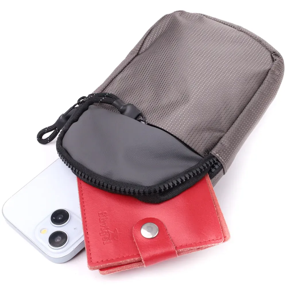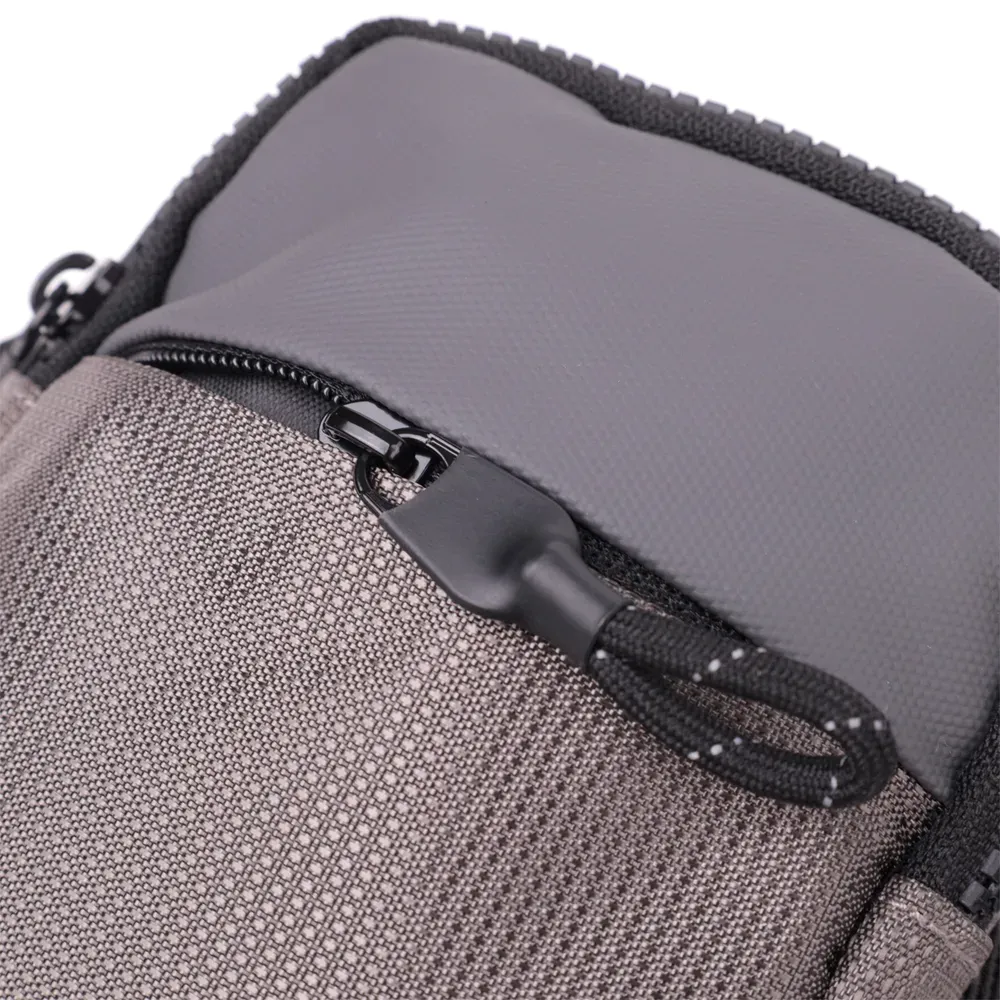 Перед Вами найзручніший варіант сумки слінг бег, яка підійде як для повсякденного використання, так і подорожі, коли всі цінні речі повинні бути в безпечному місці і під рукою. Аксесуар виготовлений з якісного текстилю сірого кольору, з контрастними вставками чорного кольору, що надає йому ексклюзивного вигляду та стилю. У моделі використано якісну фурнітуру чорного кольору. Сумка легко вміщує паспорт, телефон, ключі, гаманець та ще кілька дрібниць. Якщо Ви шукаєте зручну та легку сумку, яка задовольнить Вас за такими параметрами, як - міцність, практичність, місткість, ексклюзивність, універсальність, то ця модель перед Вами, вона має всі вище перелічені якості та стане одним з Ваших улюблених аксесуарів.