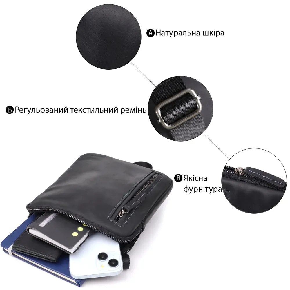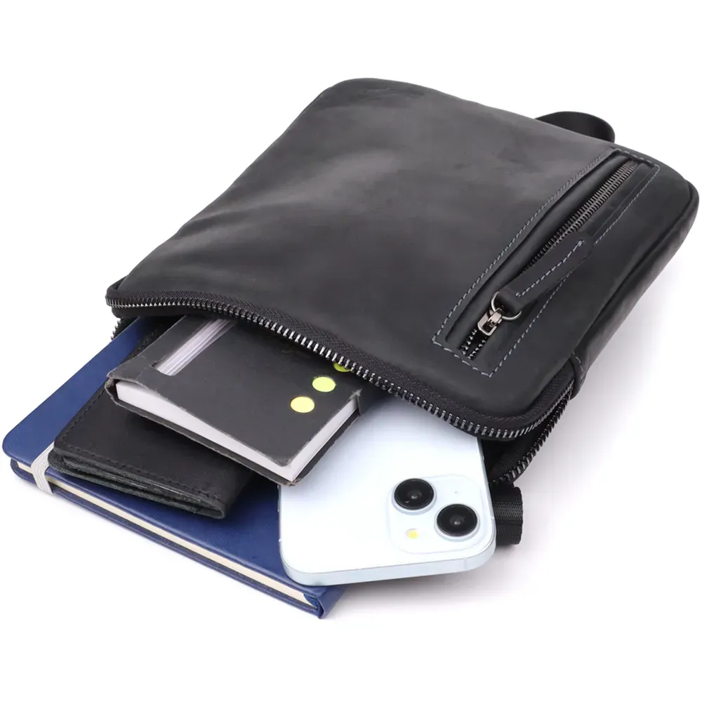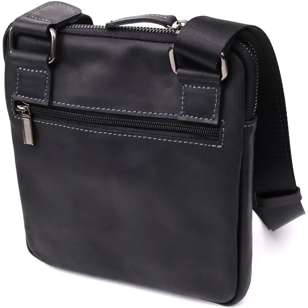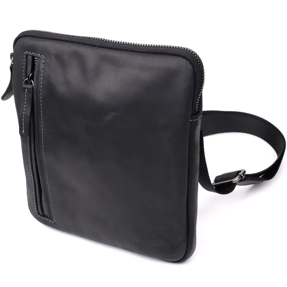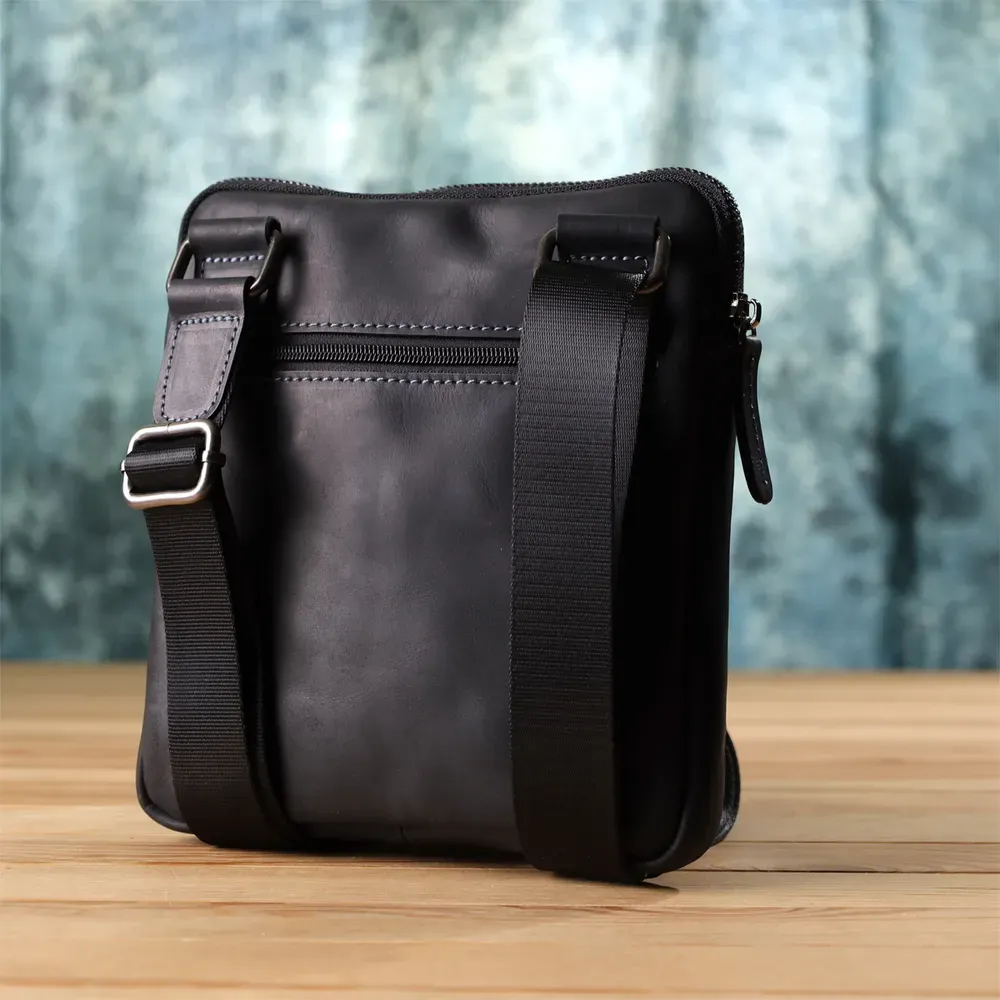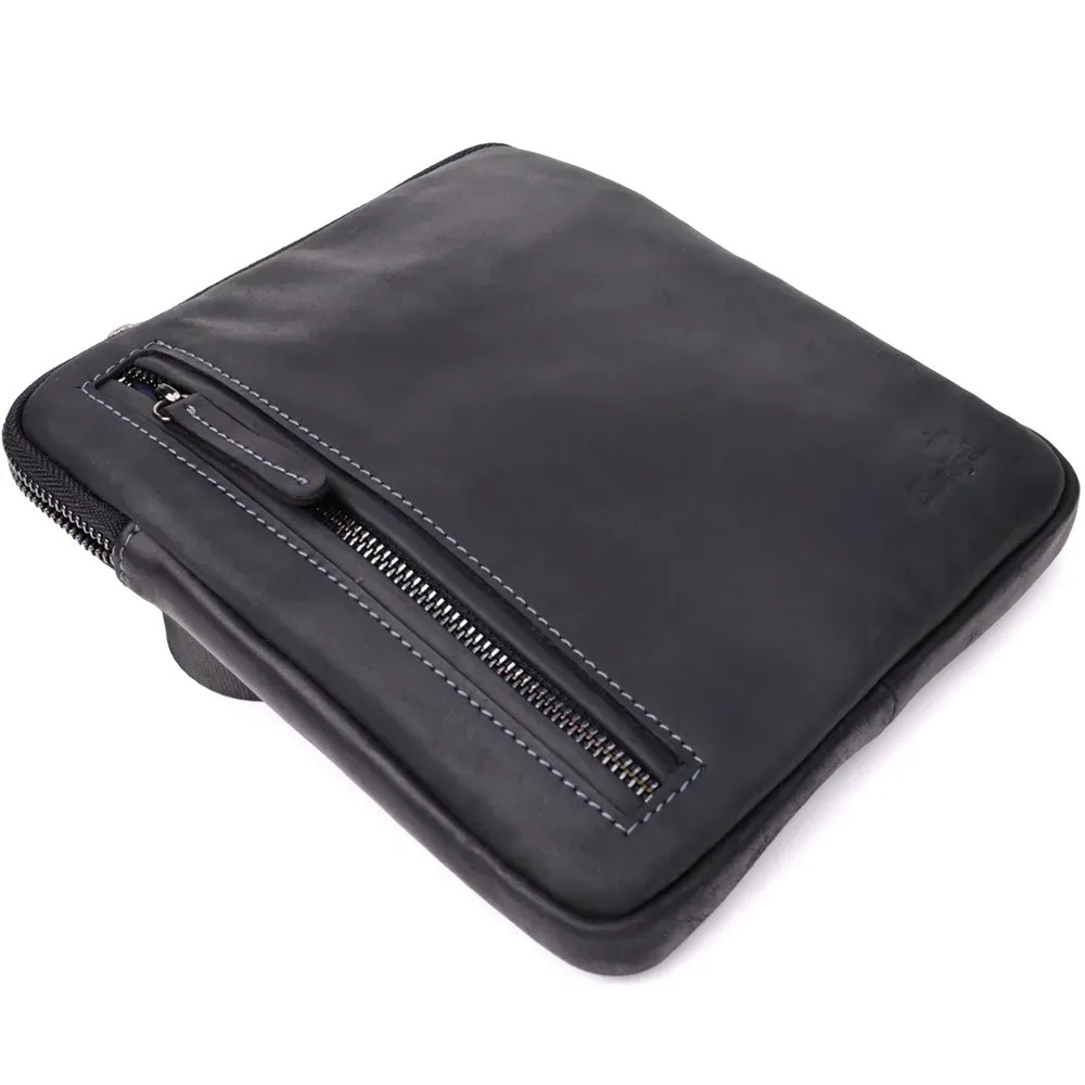 Зручна сумка для чоловіків на плече із натуральної вінтажної шкіри Shvigel 23147 Чорний