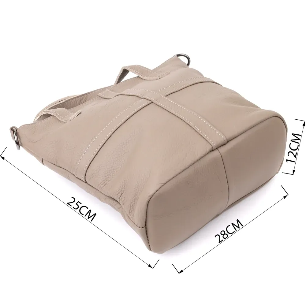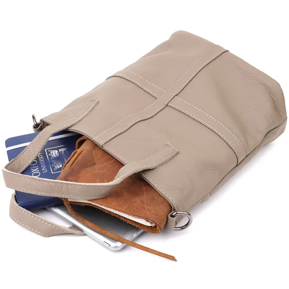 Стильна сіра шкіряна сумка у формі трапеції – це вишуканий аксесуар, у якому поєднуються елегантність, сучасний дизайн та практичність. Виконана з натуральної шкіри високої якості, вона відрізняється міцною структурою та універсальним сірим відтінком, який легко вписується у будь-який гардероб.