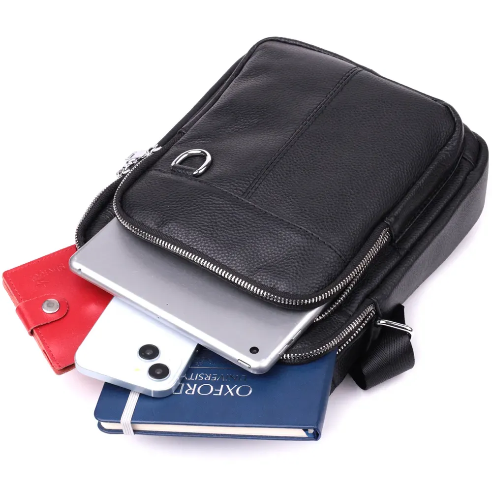 Зручна вертикальна сумка для чоловіків із натуральної шкіри Vintage 15115 Чорний