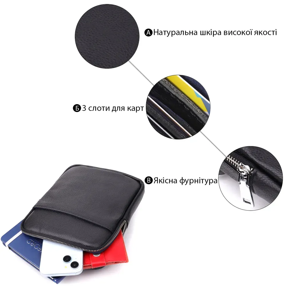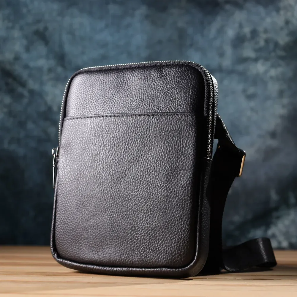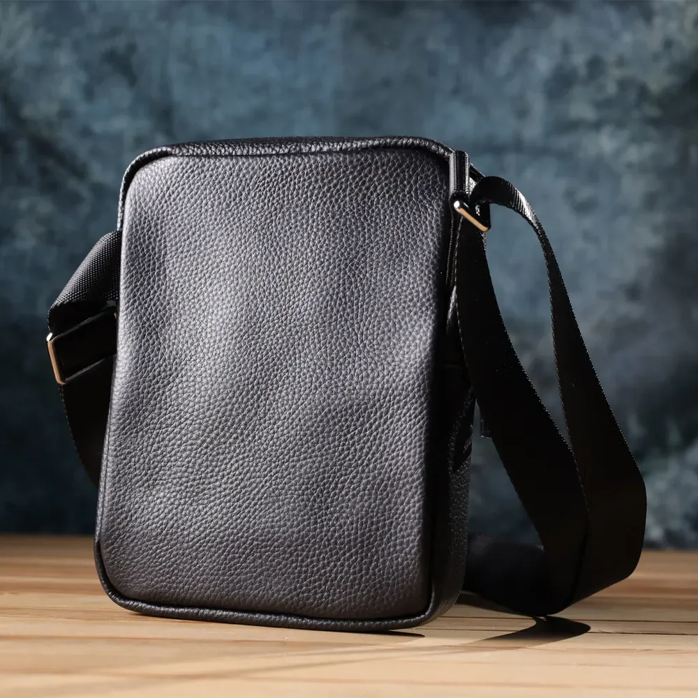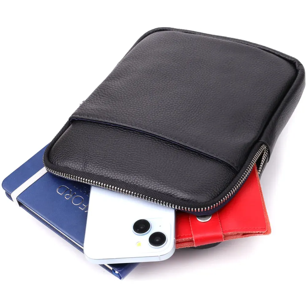 Зручна вертикальна сумка для чоловіків з натуральної шкіри Vintage 22862 Чорний