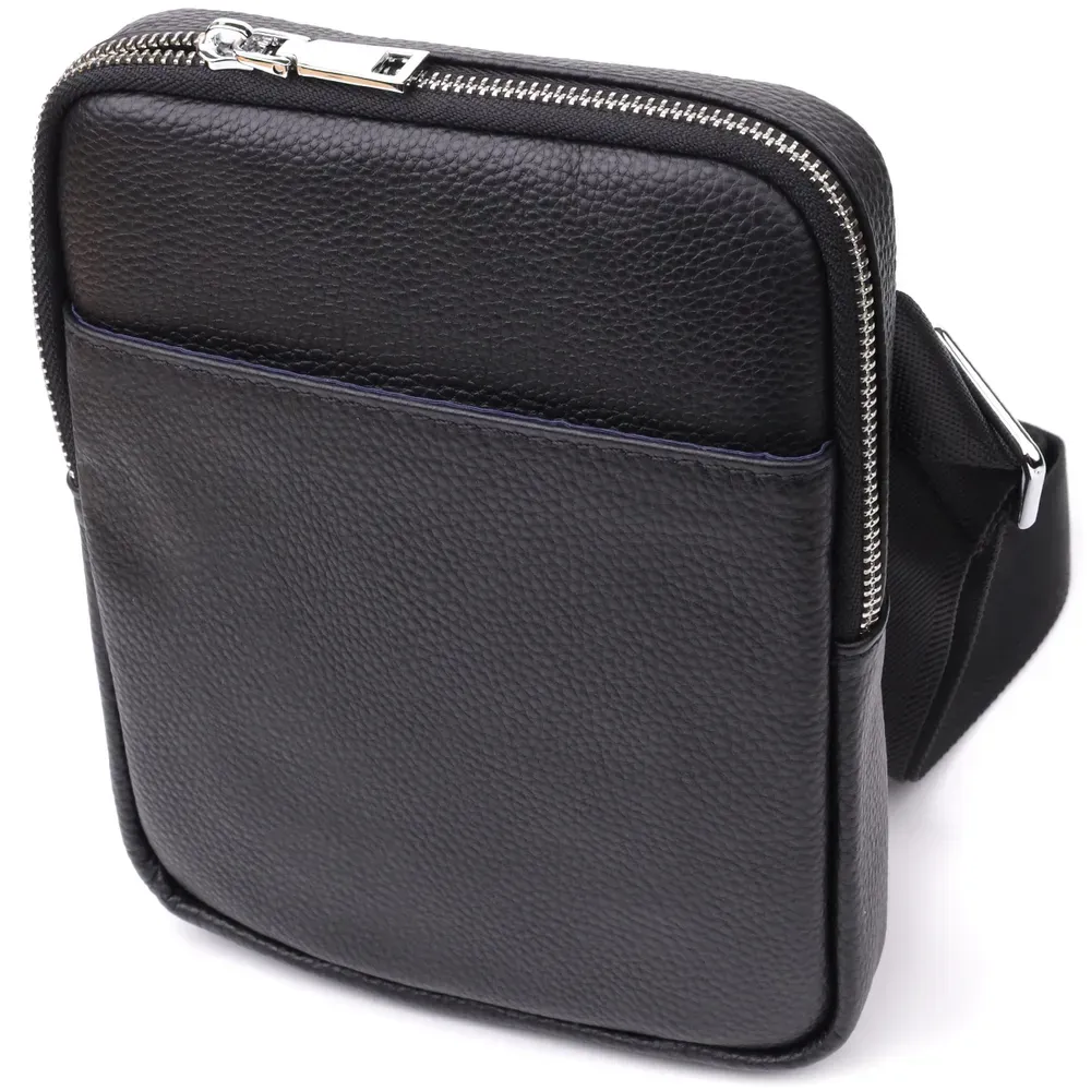 Ідеальна сумка для стильних чоловіків із якісної зернистої шкіри. Зручна та багатофункціональна модель. Відмінний варіант щодня як для ділового стилю, так і міського. На ній не видно подряпин і виглядає дуже ефектно. Модель доповнена фурнітурою кольору срібла. Всередині сумки підкладка синього кольору. Буде ідеальним варіантом для подарунка близькій людині.