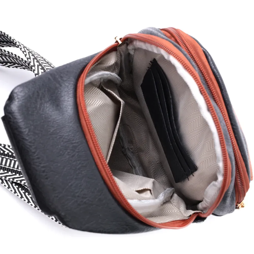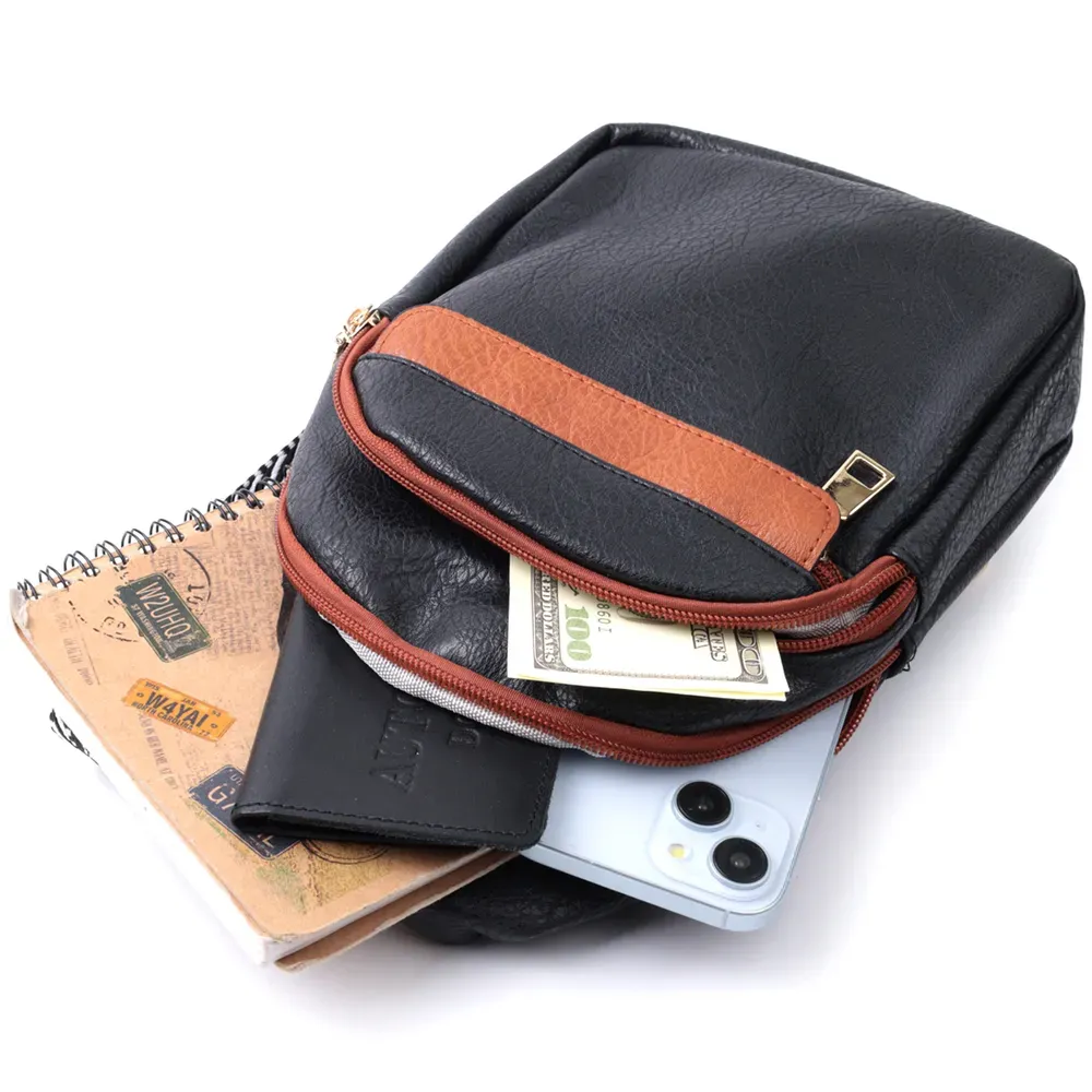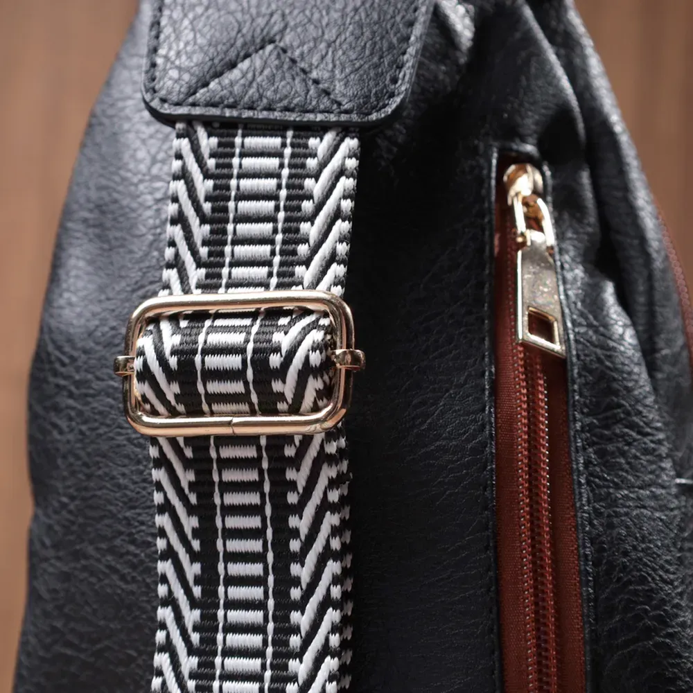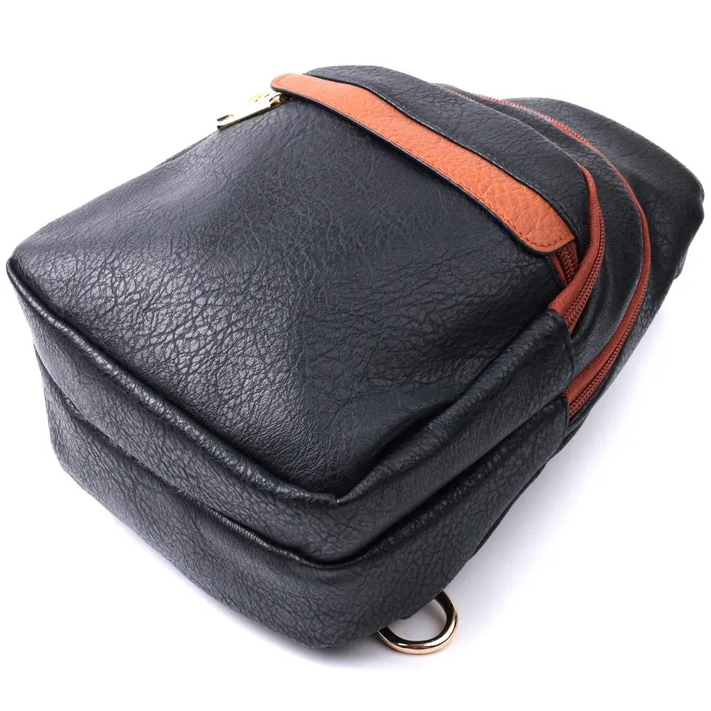 Оригінальний варіант сумки для жінок на кожен день із якісної екошкіри, яка є альтернативою натуральній шкірі. Дана модель складається з одного основного відділення, яке закривається на блискавку і в якому знаходиться кишеня на блискавці і три кишені для кредитних карток усередині, а також трьох кишень зовні та одного отвору для кабелю або навушників, що дуже зручно в сучасному світі. Акцентом даної моделі є зручний регульований плечовий ремінець у етнічному стилі, що дуже модно вже кілька сезонів. Екошкіра - високоякісна альтернатива натуральному матеріалу, яка дуже стійка до тертя, до низьких температур, відмінно носиться на відміну від інших штучних матеріалів, а також має гіпоалергенний склад на відміну від натуральної шкіри. Мода не стоїть на місці, на зміну класичним сумкам приходять нові моделі, які обумовлені сучасним часом, саме такою є слінг сумка - зручна, практична, невелика, але містка і головне якісна.