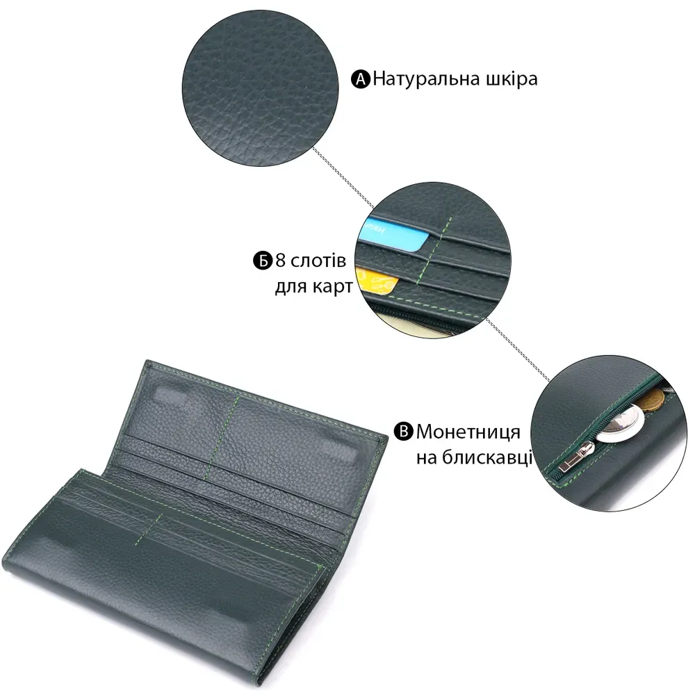 Зручний вертикальний гаманець із натуральної шкіри ST Leather 23086 Зелений