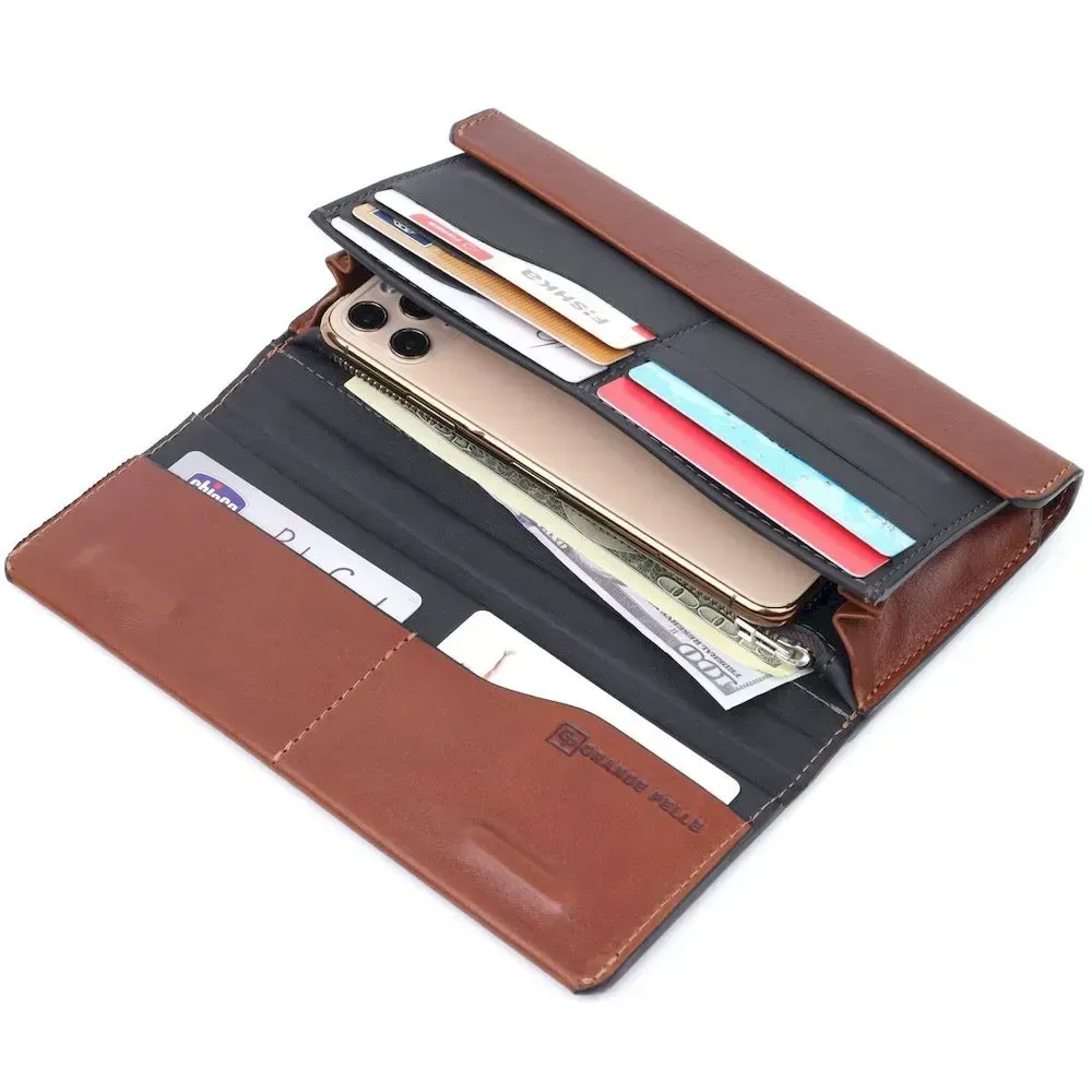 - 2 автономные части под клапанами с магнитами: первая для купюр и кредиток, вторая - для мобильного телефона;